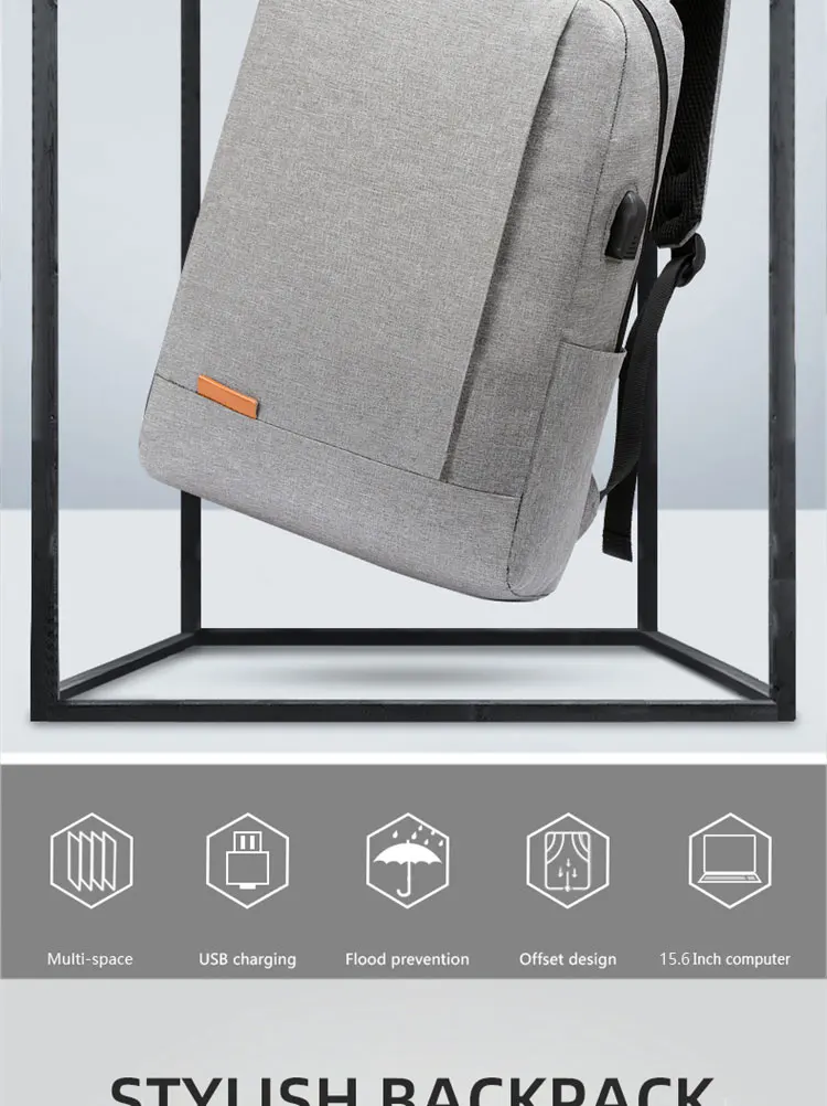 1 Pack 15.6 Inch Men's Business Simple Computer Backpack Usb Charging Lightweight Schoolbag Travel Commuting