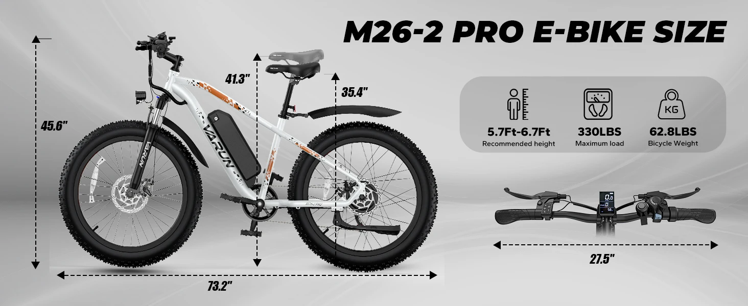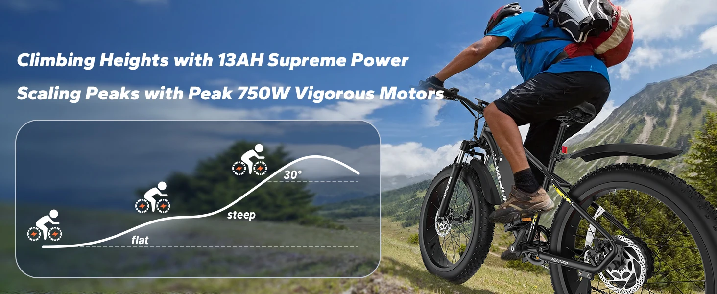 【1 Year Warranty】Varun M26-2 PRO Adult Electric Bike, 750W Peak Power, 48V 13Ah Battery, 26"x4 Fat Tire, 25MPH, E-bike UL 2849