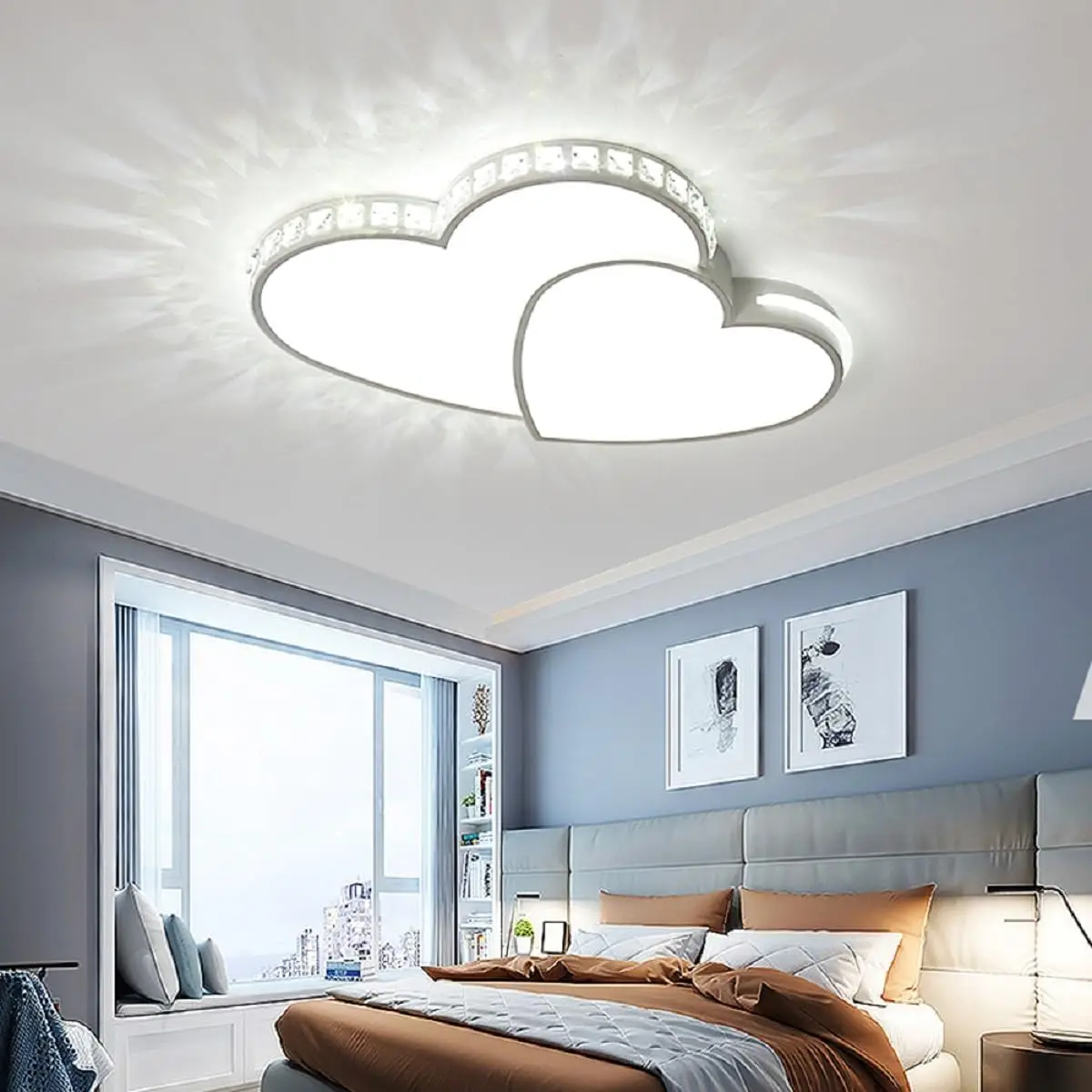 4. This shining lighting shade's heart shape and crystal design is simplistic and elegant, making your room more eye-catching.