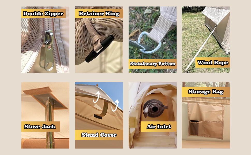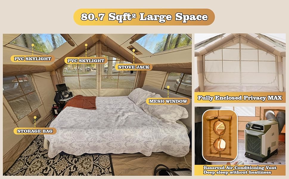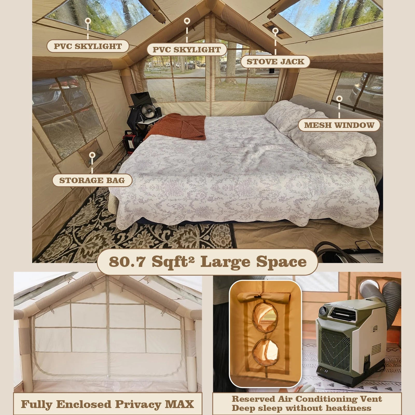10'x 8' Inflatable Camping Tent,4 Season Blow up Tents for Camping,Large Inflatable Tent 6-8 Person with Jack Stove,AC Vent