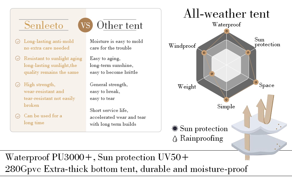 SENLEETO, We have carefully selected the finest range of camping tents to meet every customer's needs and budget. I hope you choose each of our tents not because of the price, but because you truly love it—just like marriage should be for love, not for settling