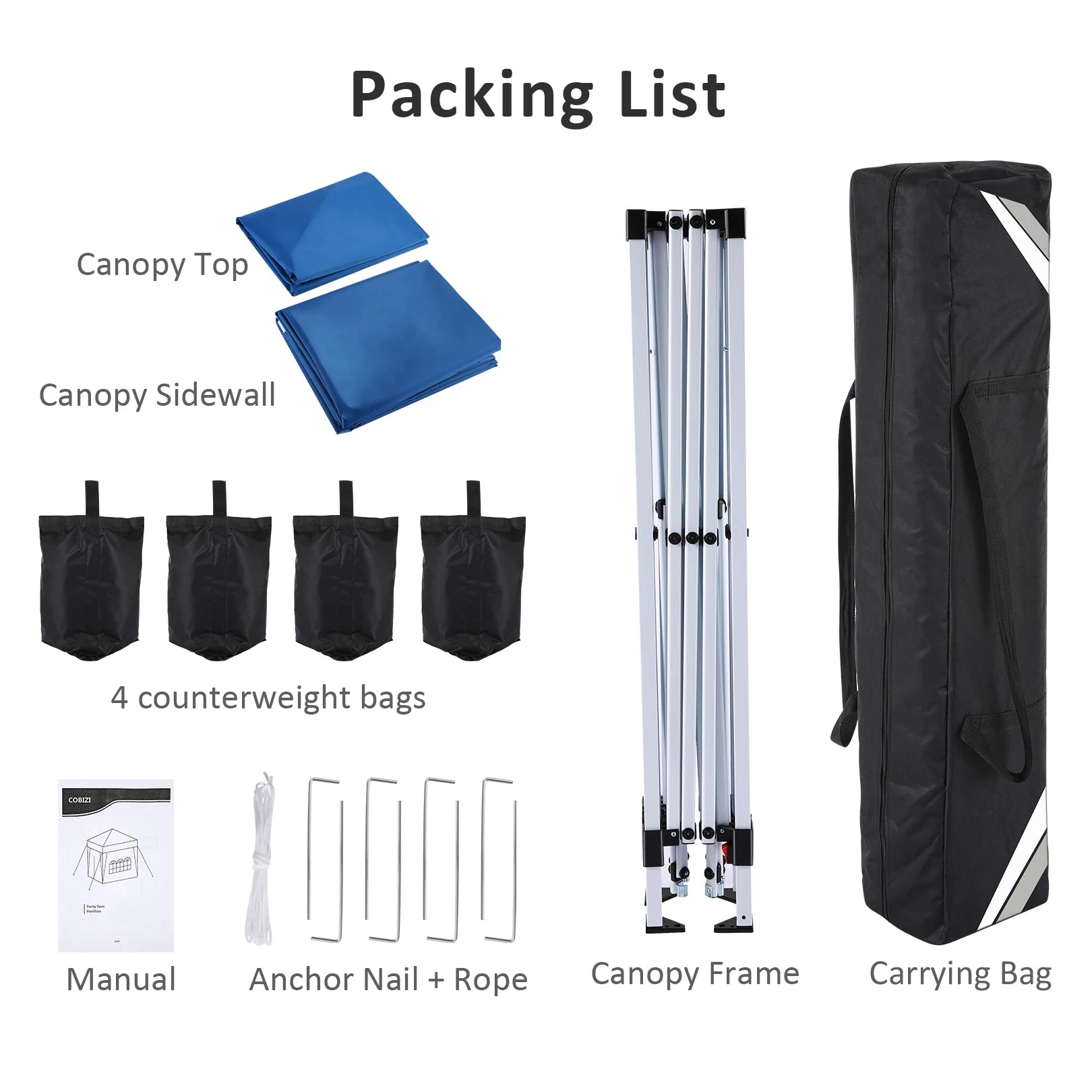 【After-Sale Service】If you have any problem with the COBIZI party tent or meet any questions during the usage, please feel free to contact our customer service. Reminder,Each sidewall is fastened to the pole with Velcro straps, so walls may not completely meet/overlap with each other; To prolong the service life of the canopy tent, please do not use it in strong wind, heavy rain, snow, storm, and bad weather accordingly.