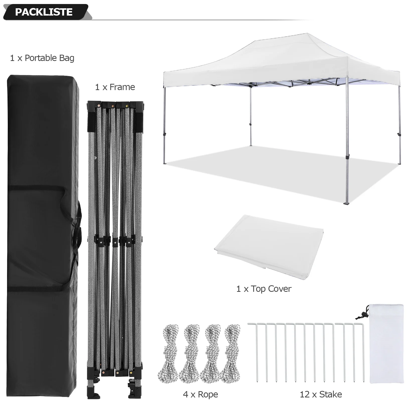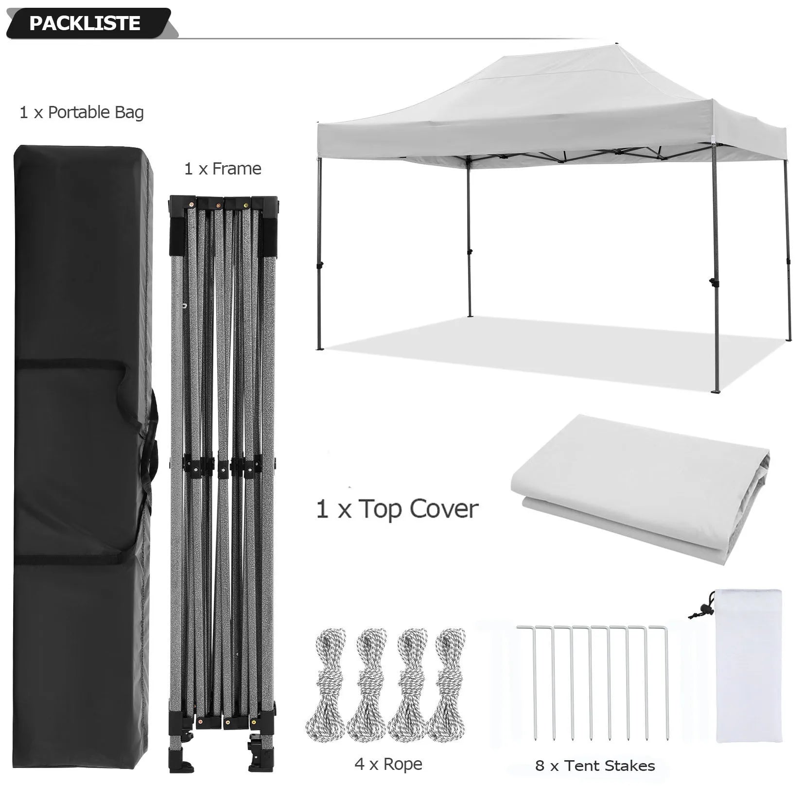 【Package Includes and Service】10x15 Pop up Canopy Includes: 1x Canopy poles+1x Canopy Roof Fabric+1x Carry Bag +4x Wind Ropes + 8 Stakes. If you have any questions during use, please feel free to contact us, we will provide satisfactory service.