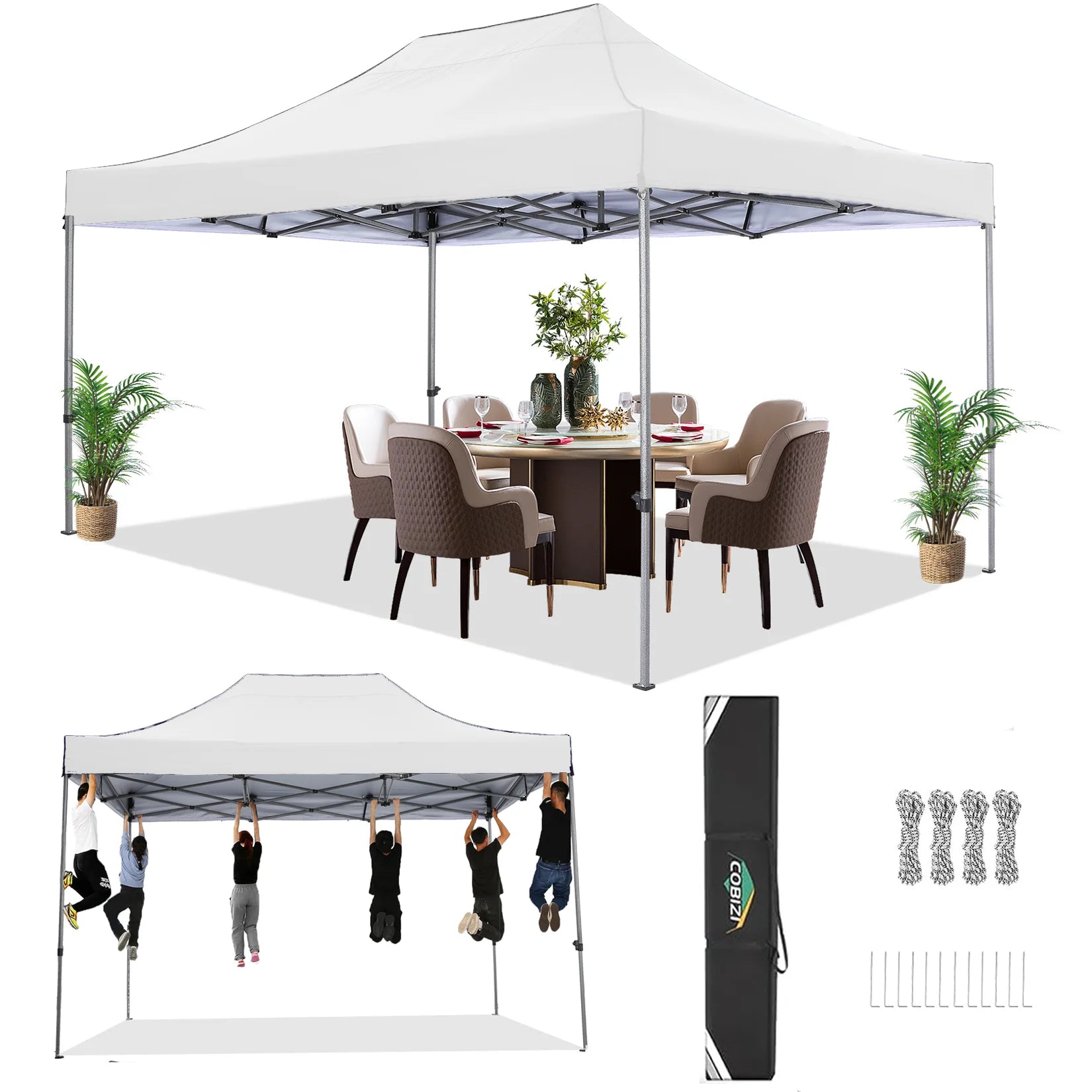 【Waterproof & Windproof Premium Material】10x15 Pop up Canopy is made of 500D Oxford fabric (280gsm) with two layers of PU coating, UPF 50+, blocking 99% of UV rays. All seams are taped and pressed to prevent leakage, 100% waterproof. Cobizi canopy has excellent performance and helps to withstand harsh weather.