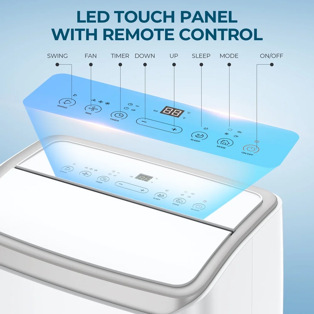 Easy Operation and Quick Installation: The smart touch panel, clear digital display, and remote control allow you to control the air conditioner with ease. And there is a small compartment on the back to store the remote control. With the window kit and detailed instructions, it is easy to attach the exhaust hose to any vertical or horizontal sliding windows and the suitable window size is 25. 5"-49".