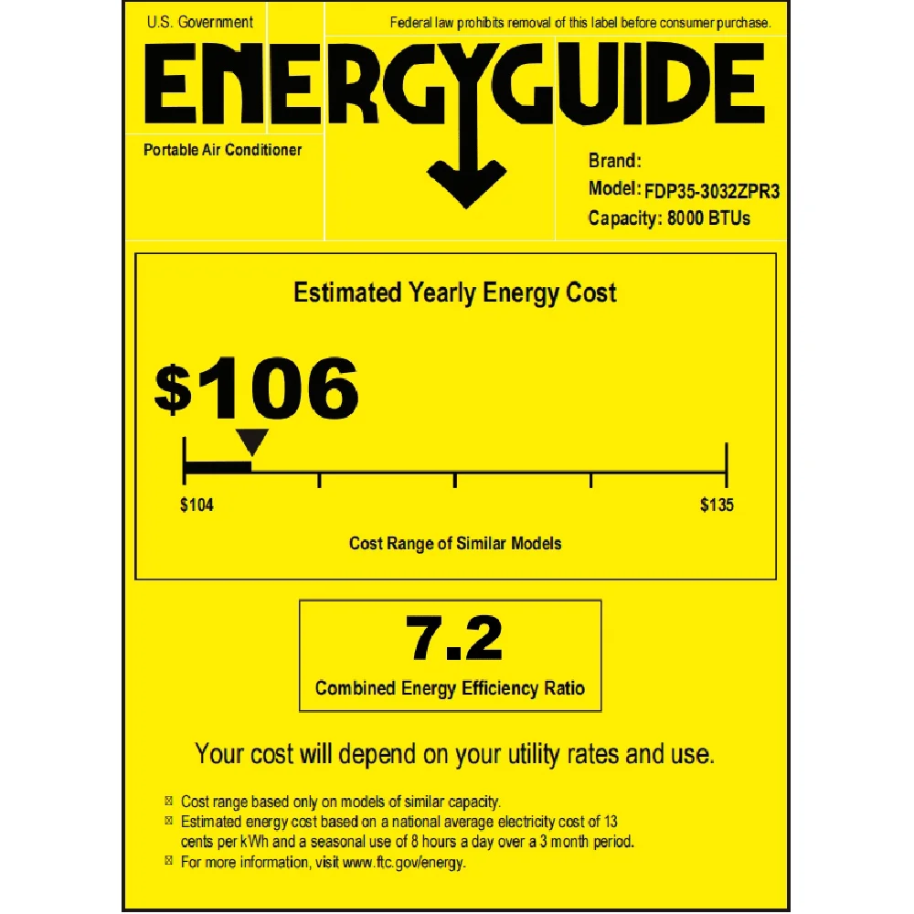 Cooling Capacity (SACC): 8000 BTU