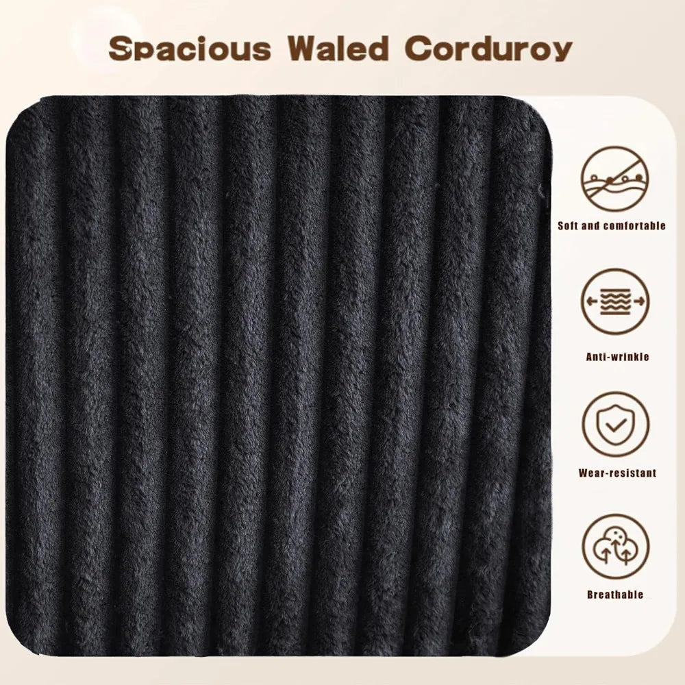 - 【No Assembly Hassles】 Say goodbye to the nightmare of furniture assembly. Unbox all packages, gently pat each part to restore its fluffy appeal, and within up to 72 hours, your corduroy sofa will resemble the picture-perfect status you desire.The sofa will arrive in three separate packages.