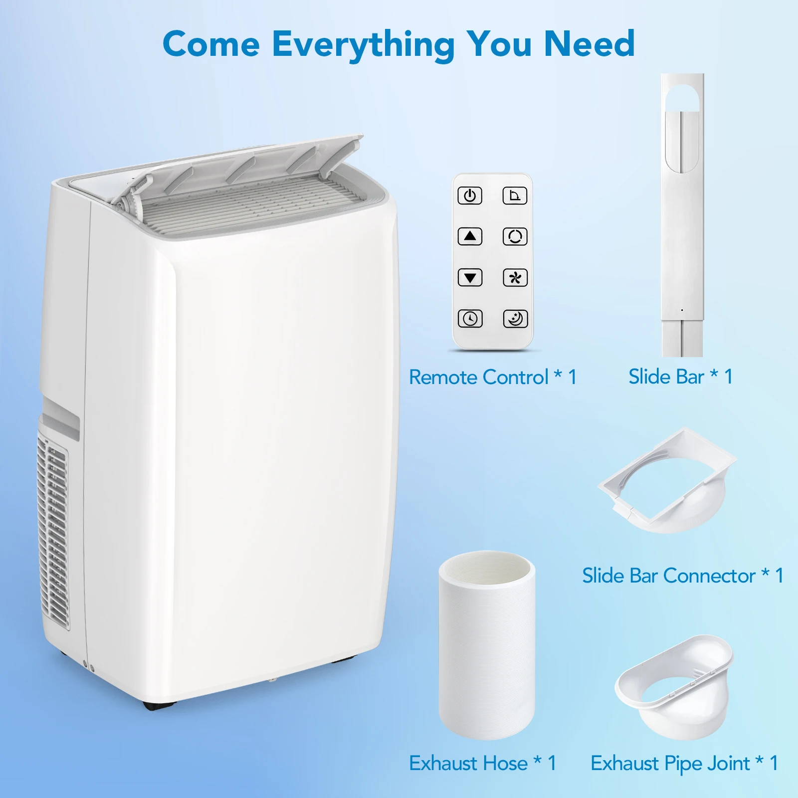 [Easy Installation & Mobility]: Includes a full window kit for tool-free setup, plus smooth-gliding wheels for room-to-room movement. This ac unit for bedroom or large space requires no permanent installation—perfect for renters, students, or flexible home environments.