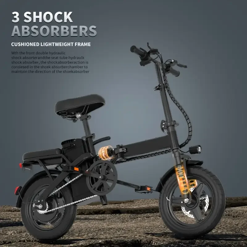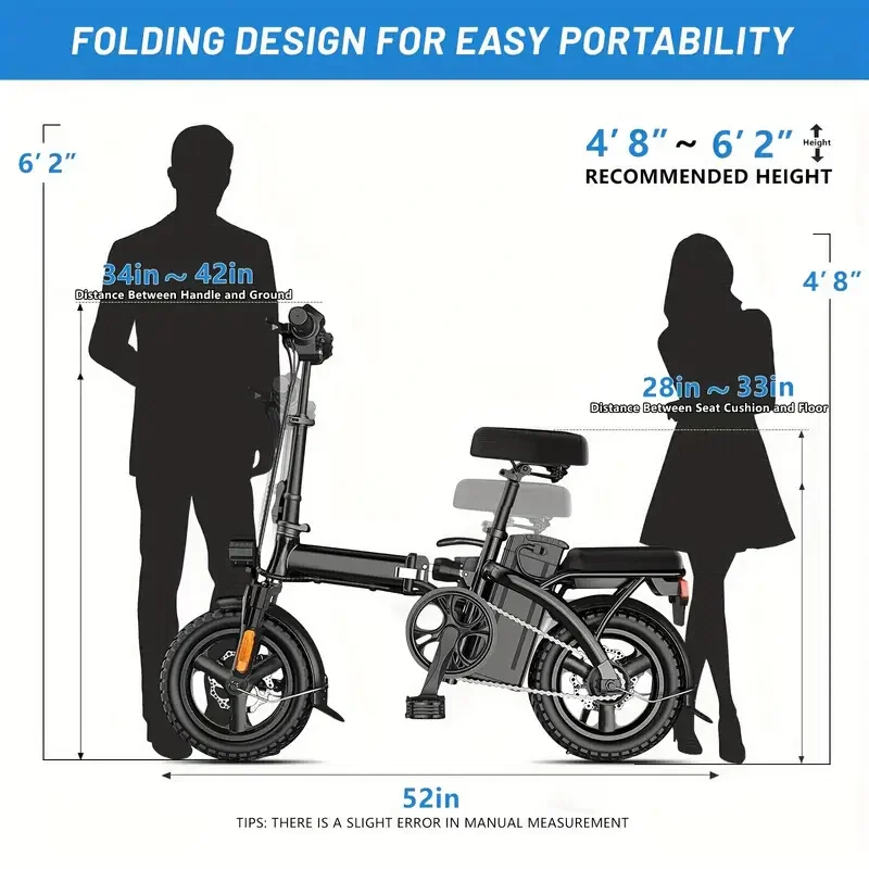 14'' Adult 400W Peak Motor Folding Electric Mountain E Bike Electric Bicycle 19.5Mph 20.5Miles 10.3AH Electric EBike for Adults