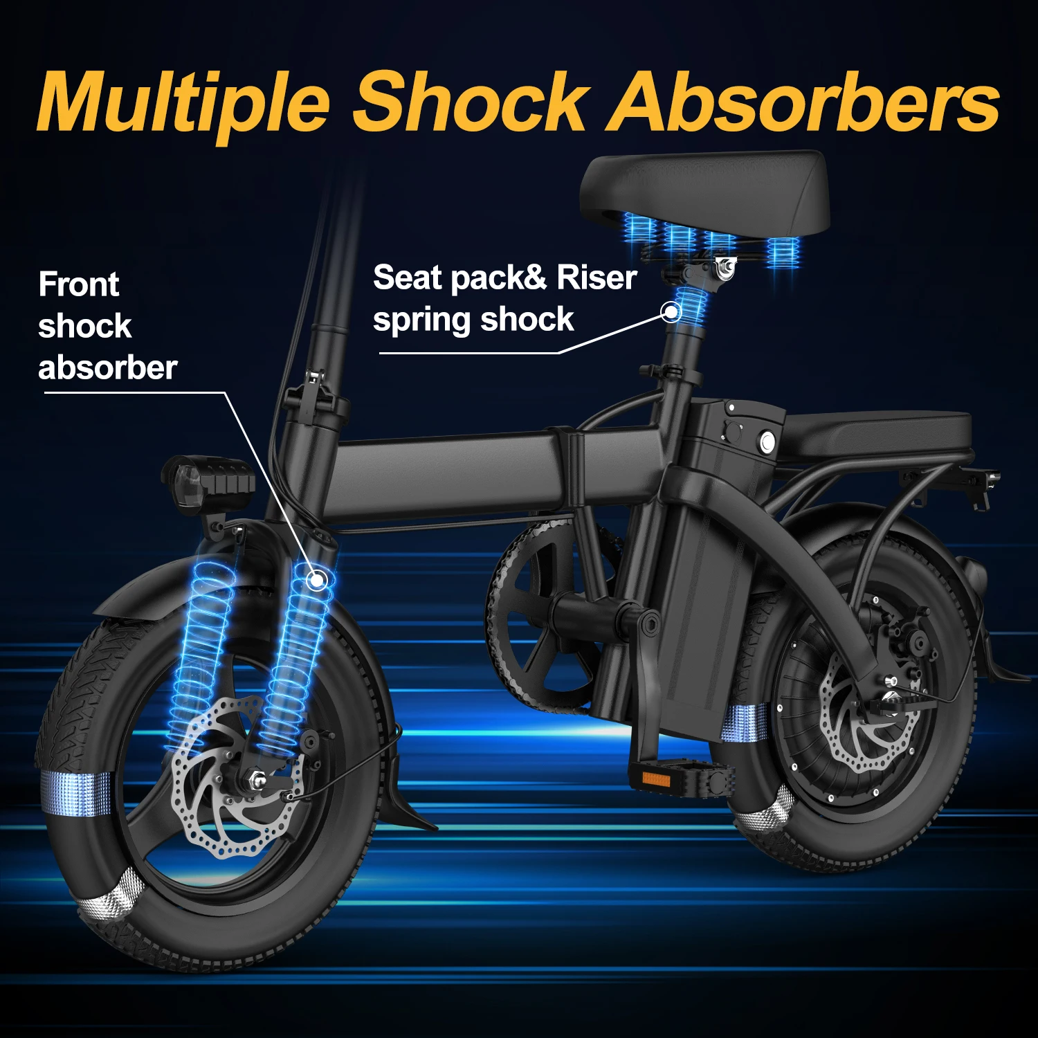 14'' Adult 500W Peak Motor Mini Folding Electric Motorcycle E Bike Electric Bicycle 19.9Mph 10.4AH 15AH Electric EBike for Adult