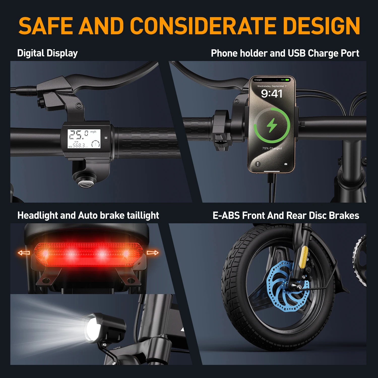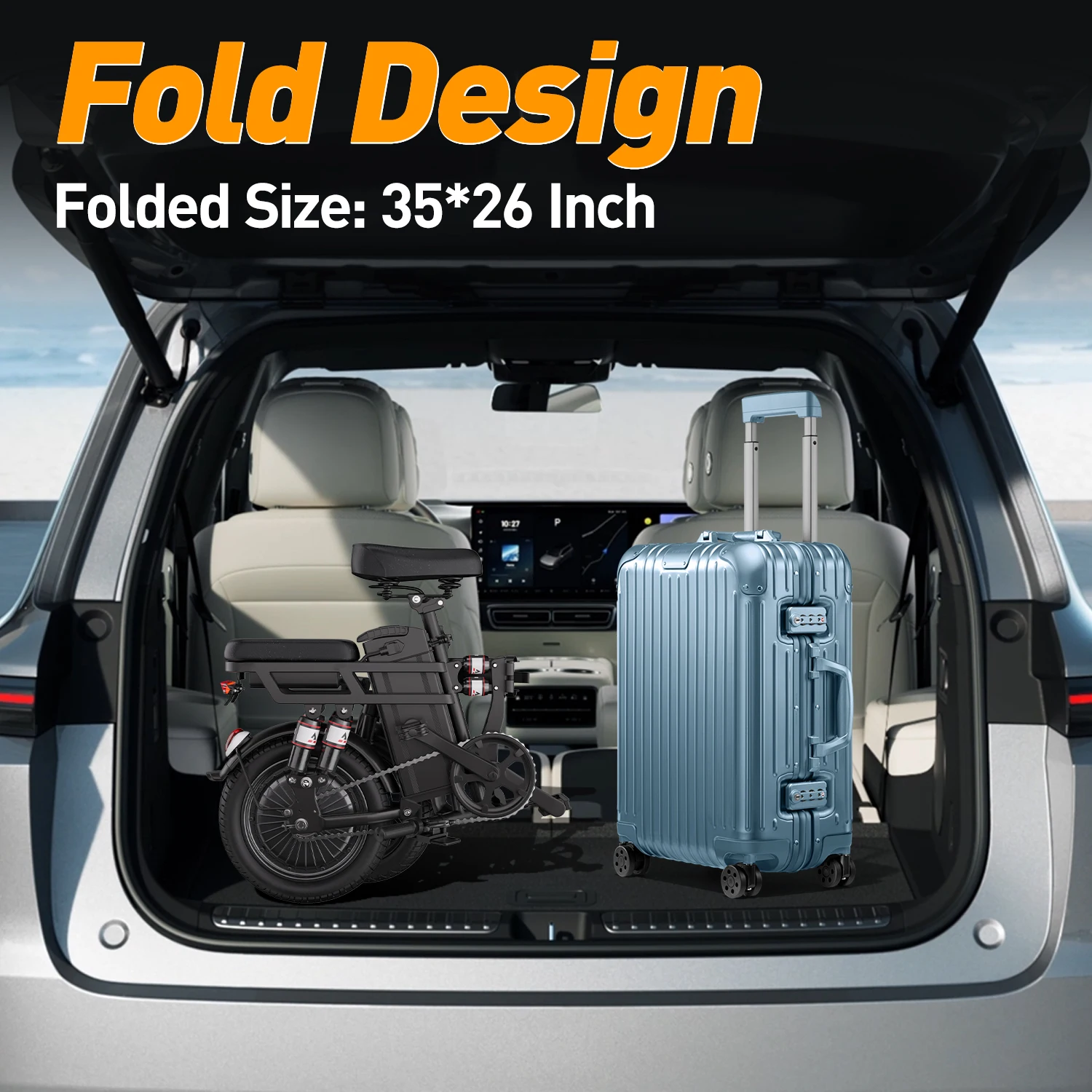 14" Folding Electric Motorcycles E Bike For Adults, 400W Peak Motor Ebike 19.9Mph 48V 10.3AH 15.3AH Electric Mountain Bicycle
