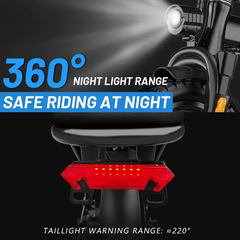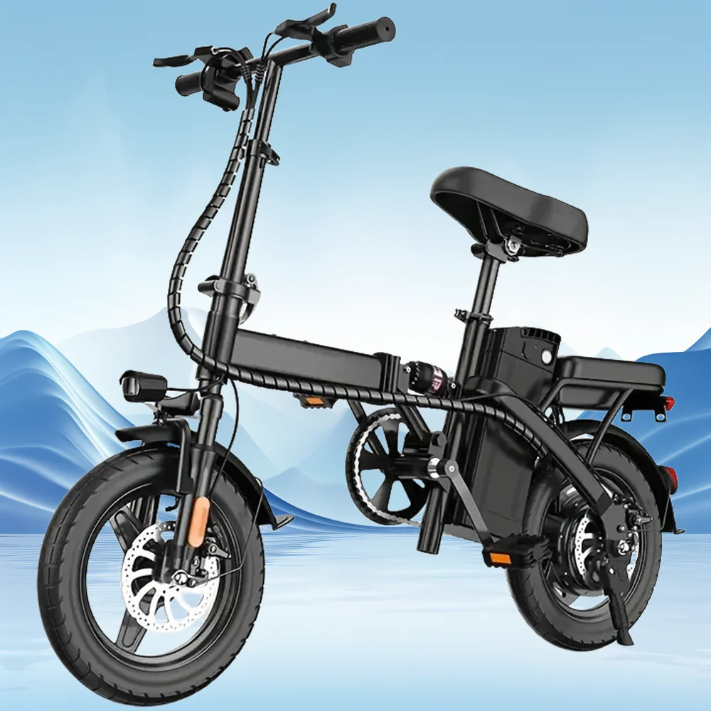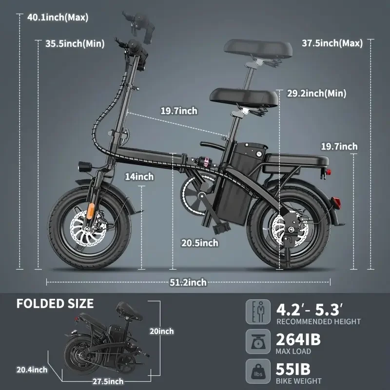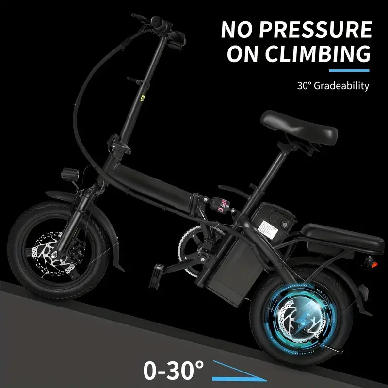 14" Folding Electric Motorcycles Mountain E Bike for Adults, 450W Peak Motor Ebike 19Mph 21Miles 48V 10.4AH Electric Bicycle