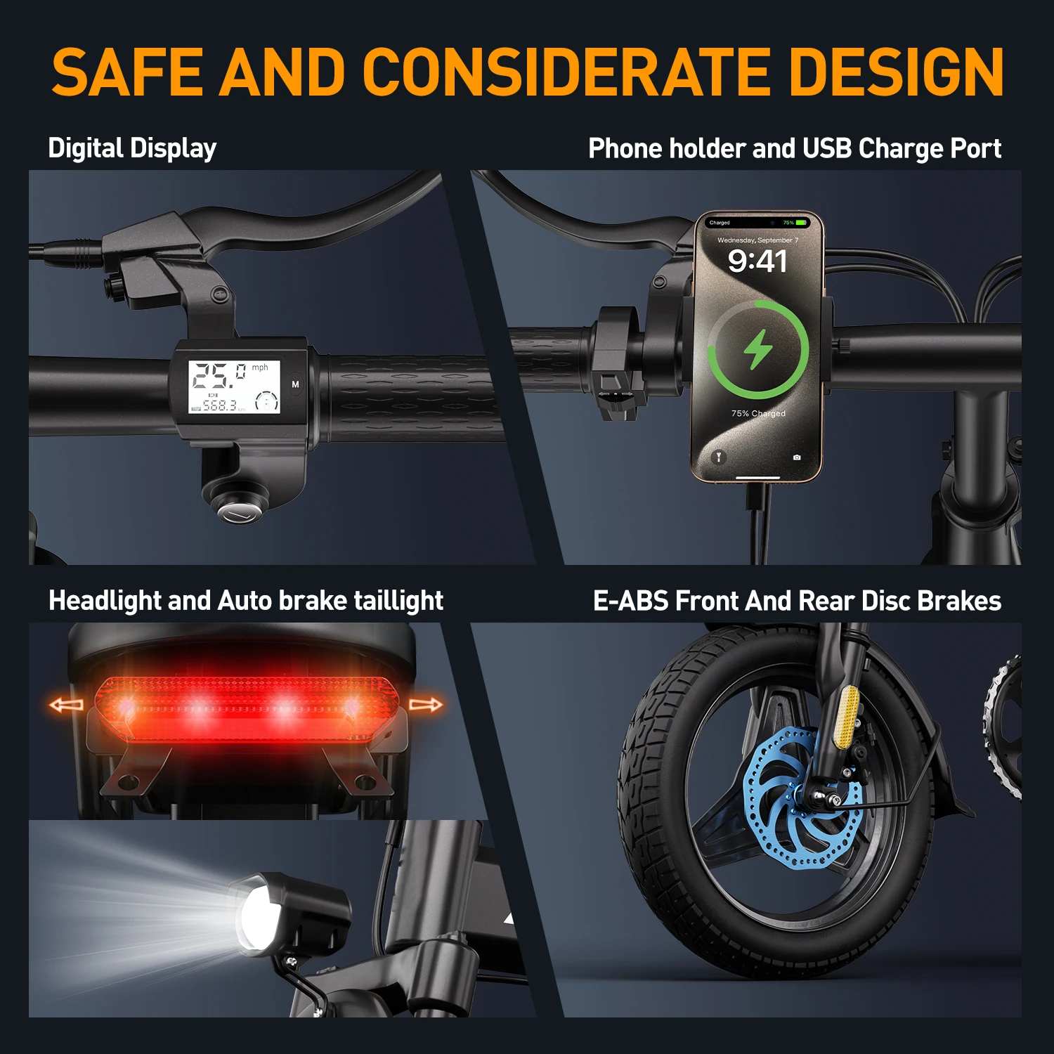 14 Inch Tyre Folding Mini Electric Motorcycles Bike 500W Motor 19 MPH 30 Mile Trip Commuter Electric Motorcycles Bike For Adults