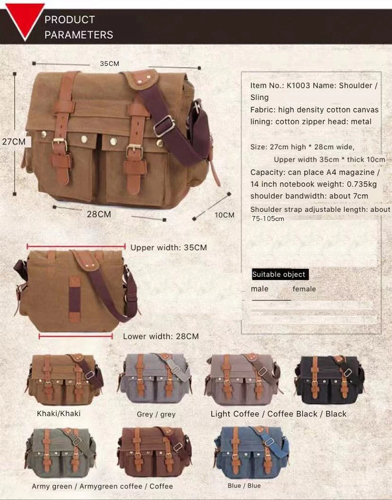 14inch Travel Satchel Business Men's Messenger Bag Vintage Canvas Military Shoulder Laptop Bags for men Male Laptop Briefcases