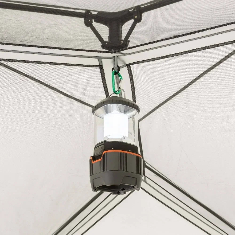 This 8-Person Instant Hexagon Cabin Tent sets up in two minutes or less. The poles are pre-attached to the tent, so you can just unfold and extend them. It comes in a stylish neutral color palette. This instant cabin tent includes a gear loft and two built-in pockets to keep your belongings organized. It features a convenient e-port that provides electrical cord access, ensuring that you can get the connection needed for accessories and lighting. The floor plan comfortably fits two queen-size airbeds, or up to eight campers in sleeping bags on the floor, and features a center height of over 6 feet. This instant camping tent is made with quality materials that are safe for outdoor use. It has large windows so you can see the picturesque outdoors while you are camping. The 8-Person Instant Hexagon Cabin Tent will fold compactly for simple transport.