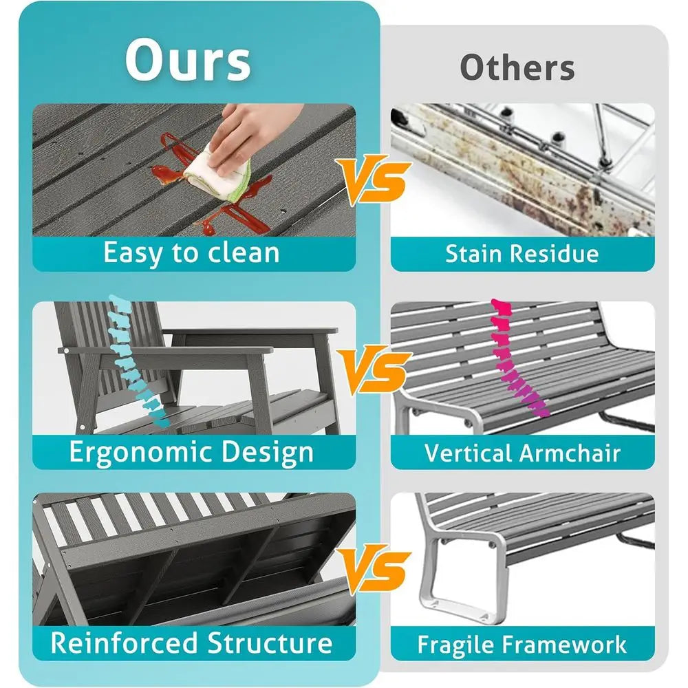 2-Person Outdoor Patio Bench, 660lbs Capacity, Weather-Resistant, Grey for Porch, Backyard, and Parks