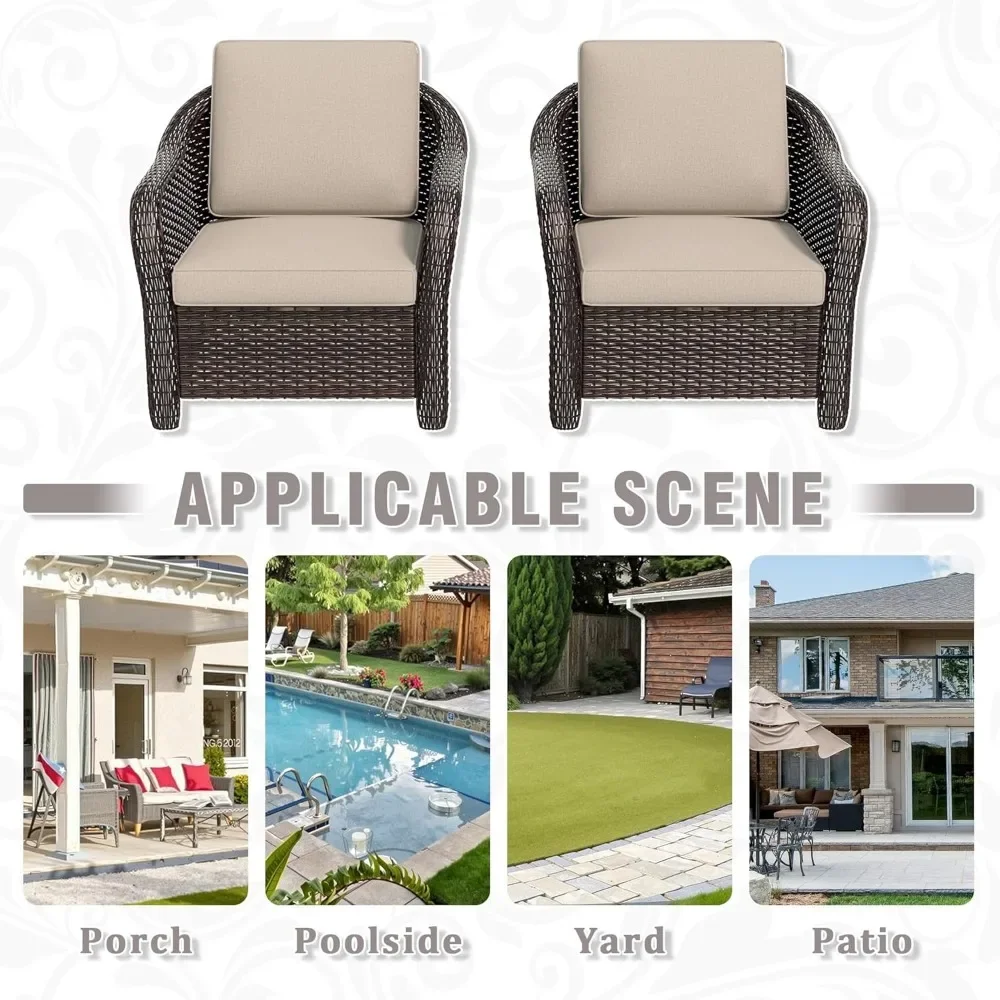 2-Piece Outdoor Wicker Chair Set All-Weather Patio Rattan with Seat & Back Cushion Ideal for Porch Backyard Balcony