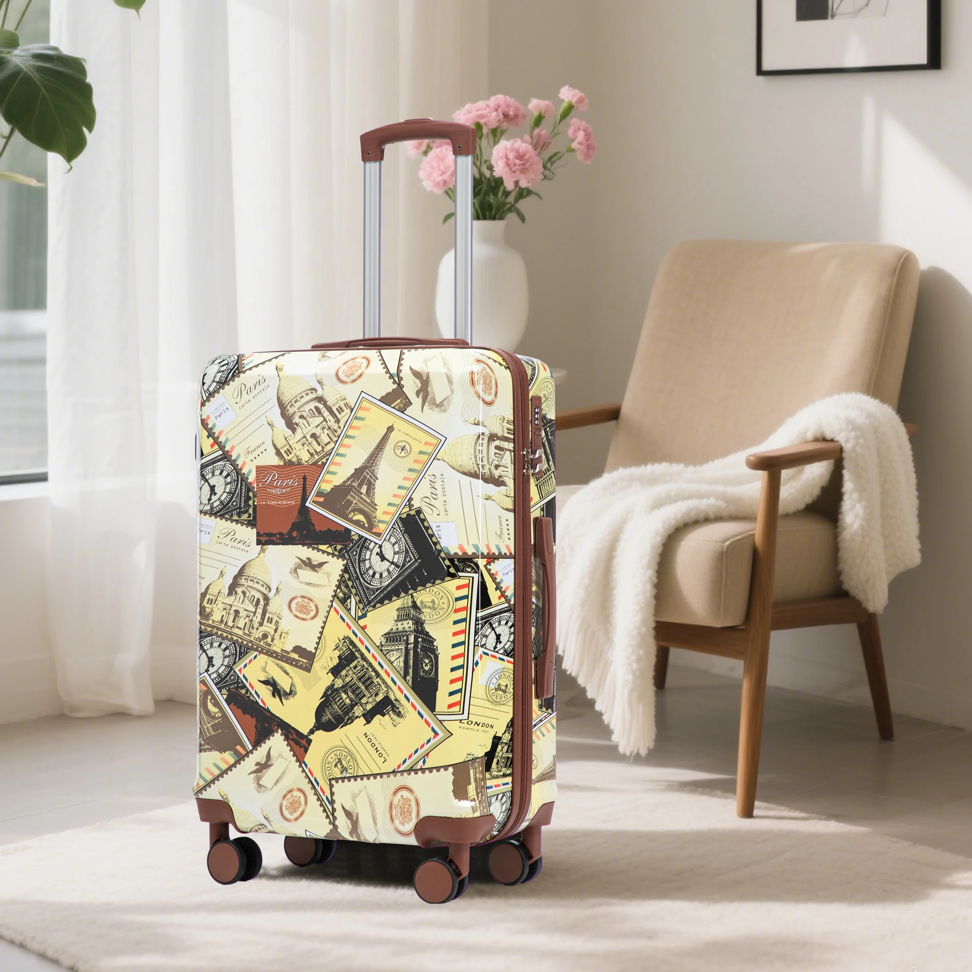 20"/24"/28" 3 pcs/set in PC Spinner Wheel Luggage, Carry on Suitcase, With Printed pattern and Combination Lock