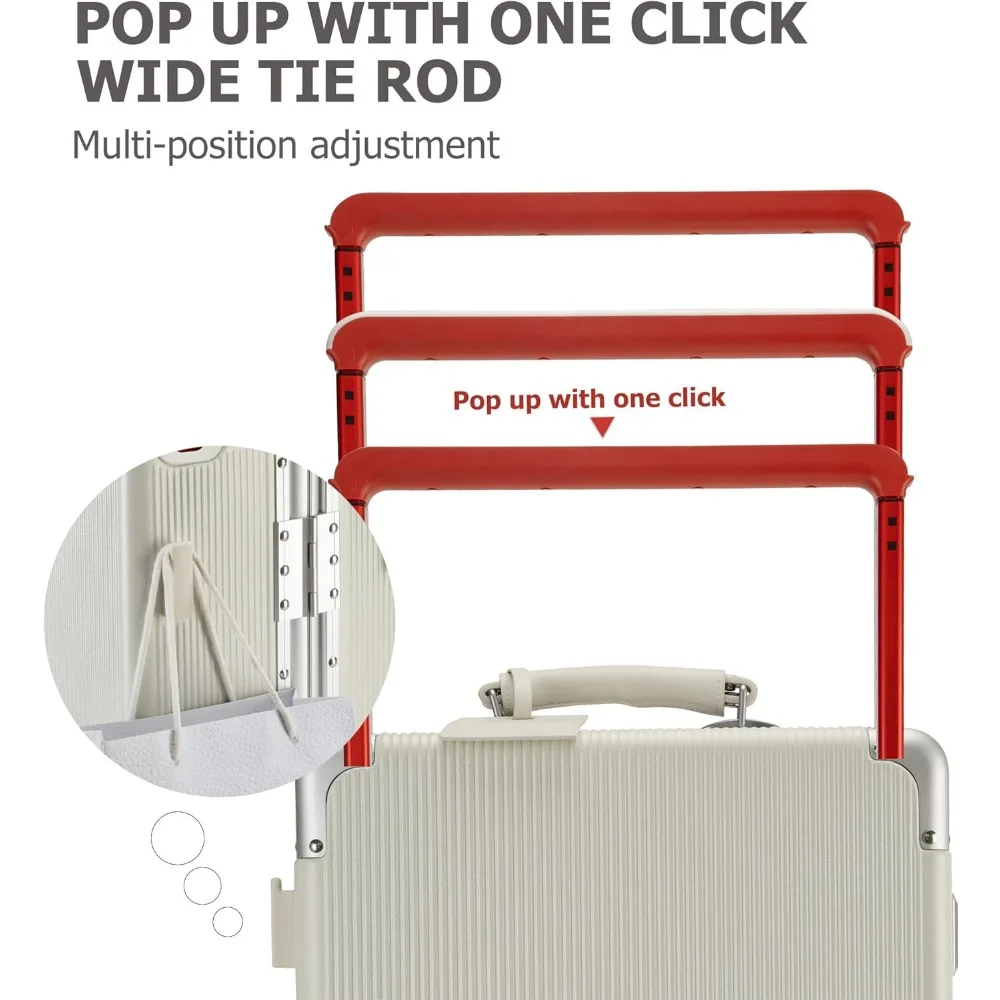 20 Inch Aluminum Frame Wide Handle PC Hardside Double Spinner Carry-On Luggage - Luxury Rolling Travel Suitcase