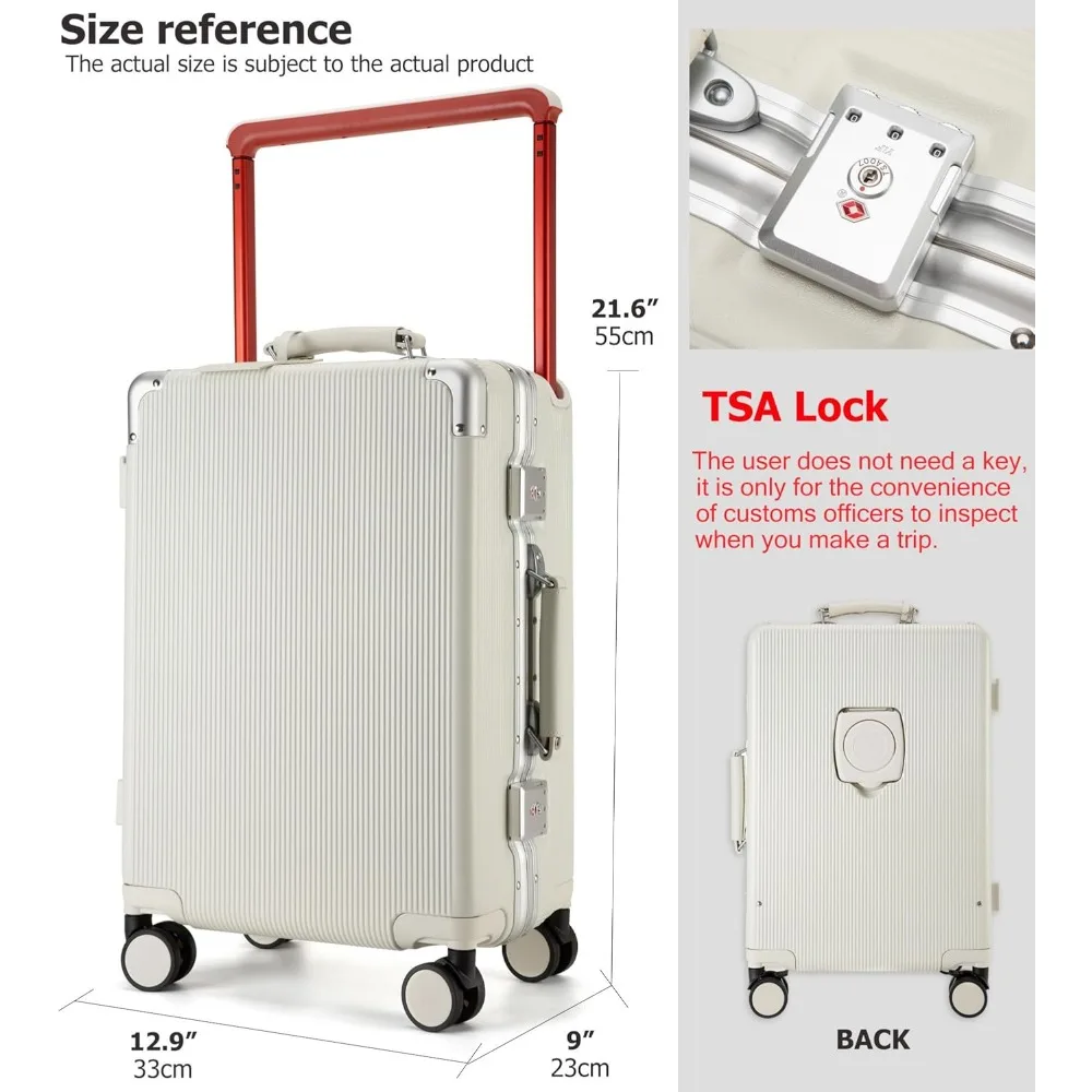 TSA Lock is a globally recognized security feature on luggage, allowing customs officers to inspect bags with their master key without the need for a physical key from the owner. Users simply set their own password for secure travel. This PC hard shell luggage boasts a spacious, durable aluminum-magnesium alloy handle that offers 98% more usage space compared to standard luggage. The handle is adjustable in three positions and features a one-touch button for easy deployment. Made from strong PC material and reinforced with an aluminum frame, this luggage is designed to withstand scratches and provide long-lasting durability. The sturdy construction ensures that your belongings are protected during travel. This aluminum-framed luggage is multi-functional, including a convenient cup holder for refreshments on the go and a TSA-approved combination lock for enhanced security. The carry-on suitcase is thoughtfully designed with an organized layout, featuring a wet/dry compartment for efficient packing. The detachable section caters to all your travel needs, making it a practical choice for organized travel. Equipped with 360° non-slip rubber double spinner wheels, this luggage promises a smooth and effortless travel experience. The high-quality rubber material ensures shock resistance and flexibility, allowing for a comfortable and stylish journey.