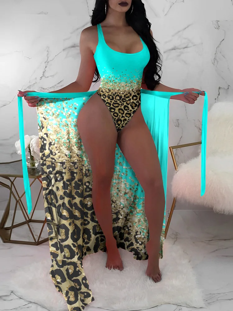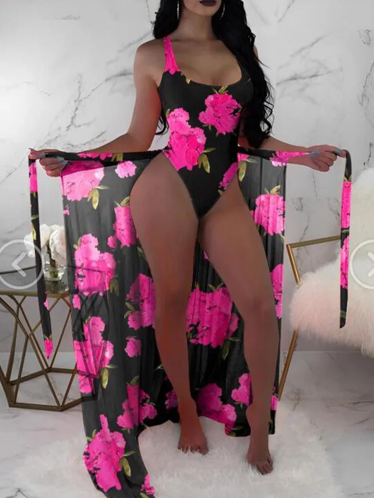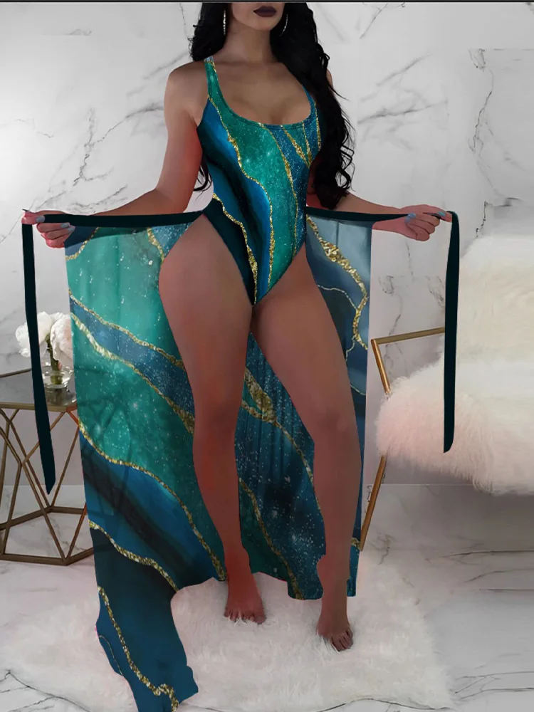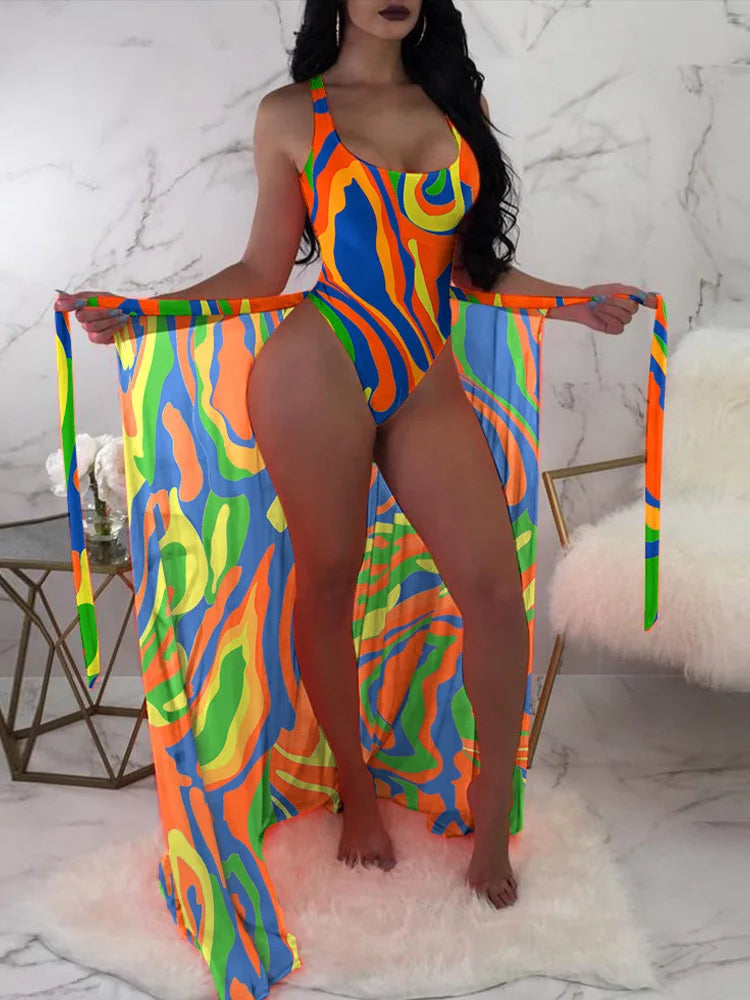 2024 New Summer Bikinis Set Sexy Backless Print Bikinis 3 Piece Set Women Smock Split Swimsuit High Waist Vacation Beach Bikinis