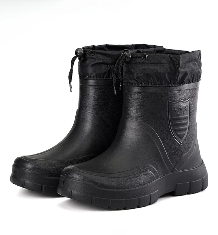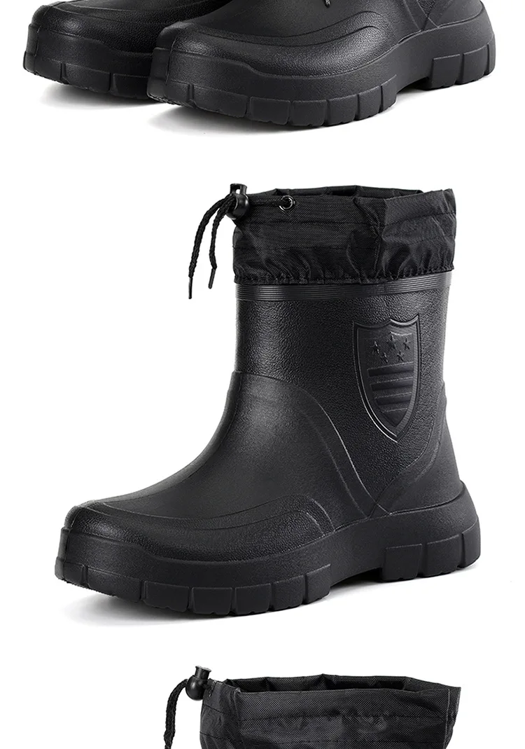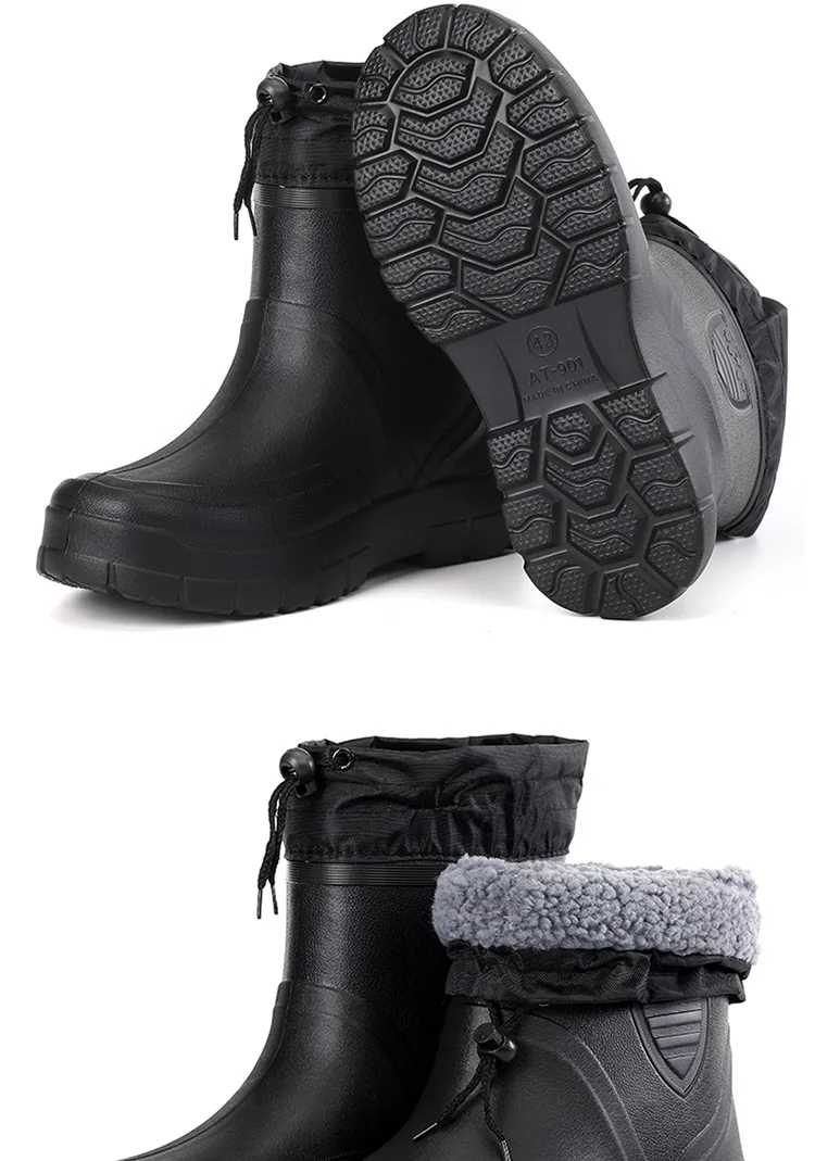 2024 Versatile Men's Rain Boots Waterproof outdoor lightweight shoe Velvet fashion short boot Casual comfort male water shoes