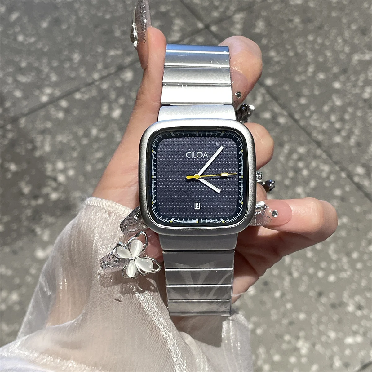 Features: Square, light luxury high-end feel, exquisite, steel strap with double snaps, large dial, high-end, fashionable new style, quartz movement, 30 meters waterproof, stable quality, niche watch, suitable for women, genuine quartz watch, pointer time display, jewelry decoration.