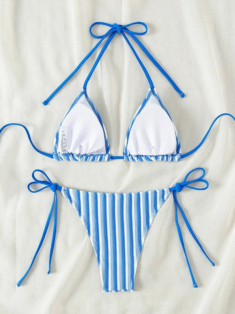 2025 New Summer Bikinis Set Sexy Striped Split Bikinis 2 Piece Set Women Swimsuit High Waist Backless Vacation Style Bikinis