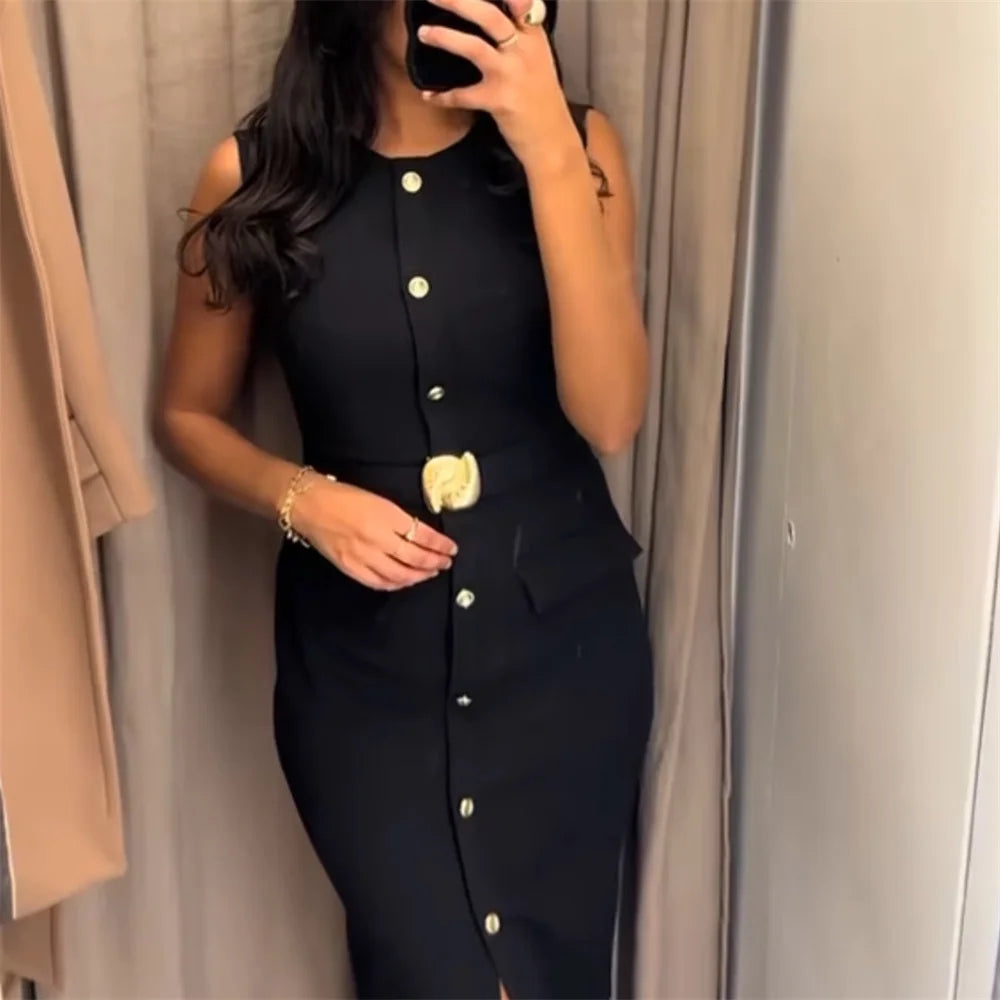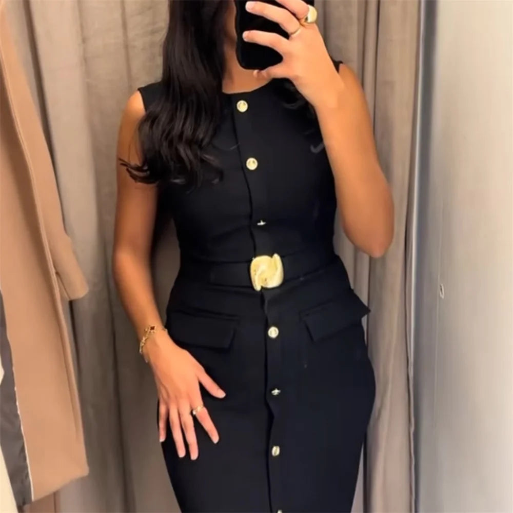 2025 new women's clothing European and American style casual elegant design with belt crepe fabric MIDI dress