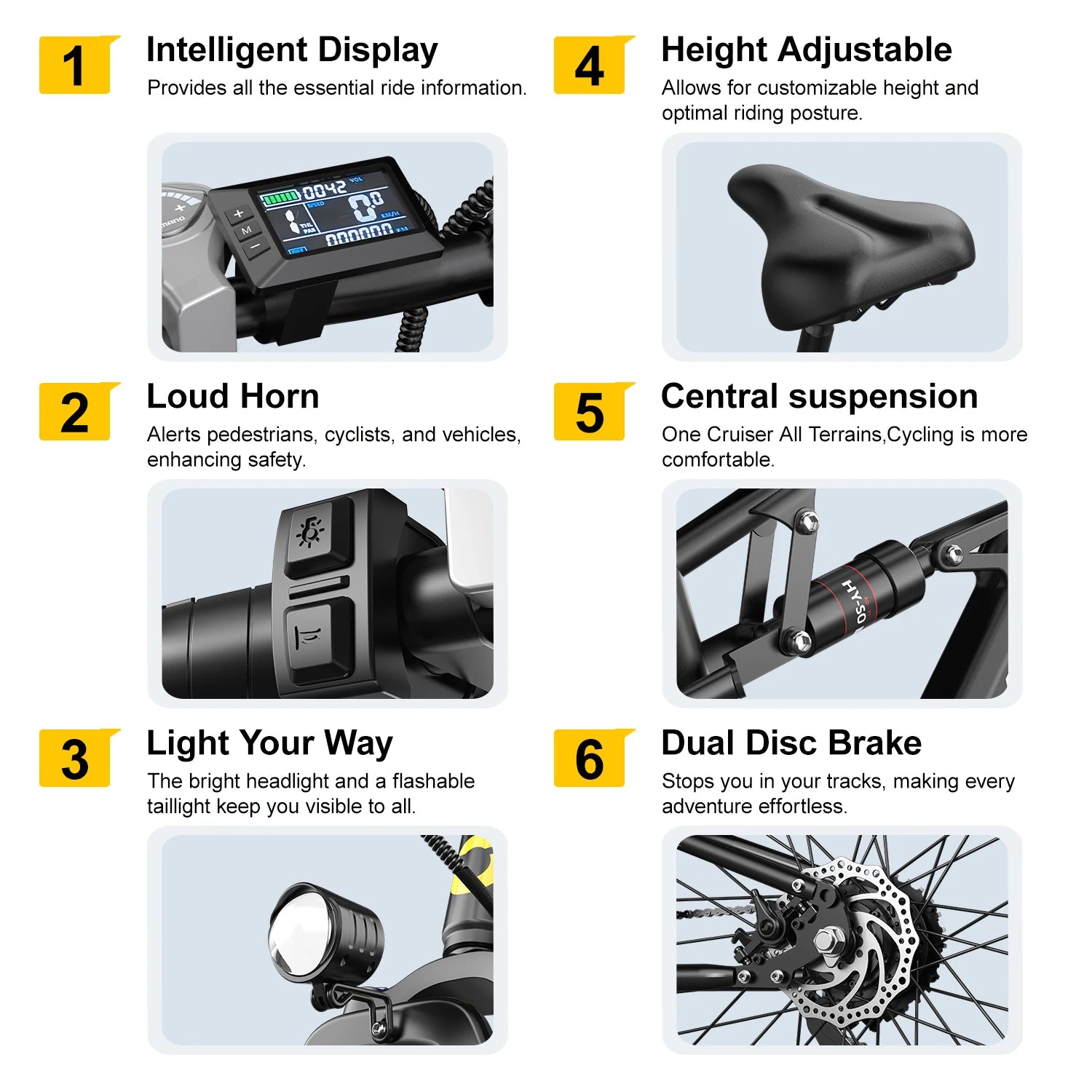 Smart electronic 5-speed shifting, one-touch switching between climbing/downhill modes (pure electric range of 23 miles, assisted mode up to 40 miles).