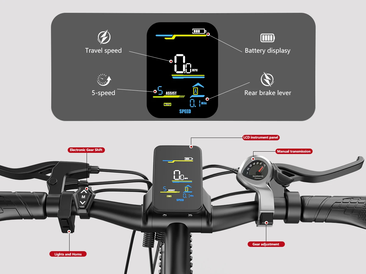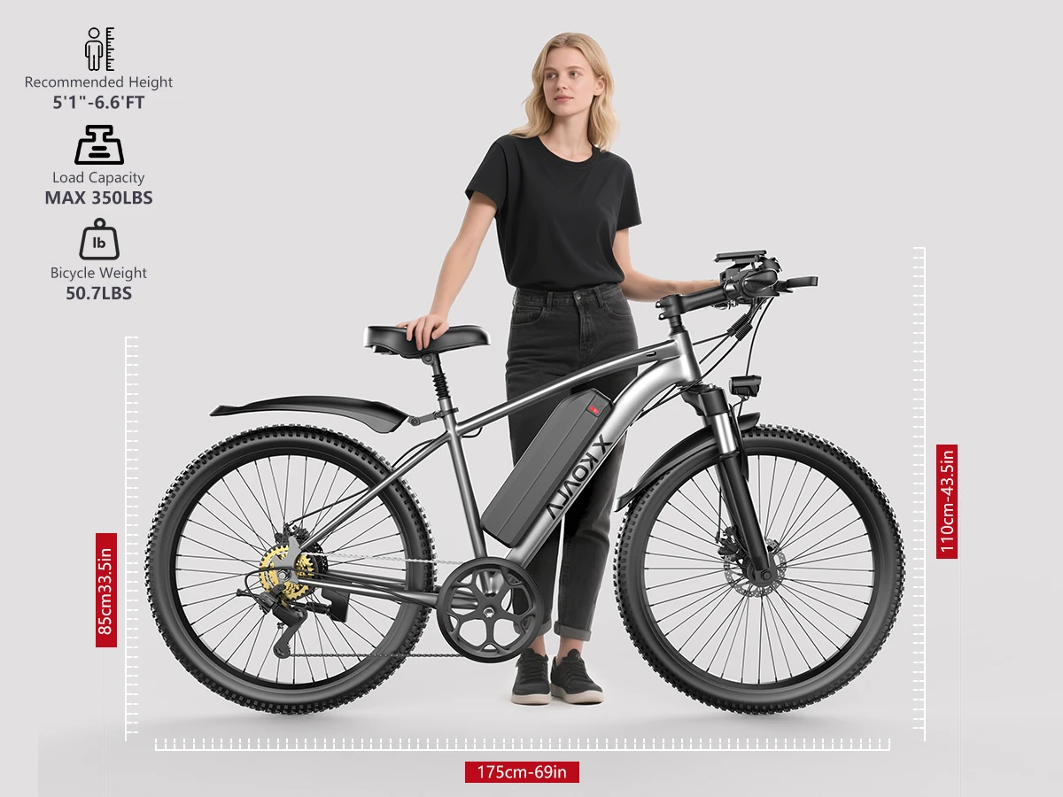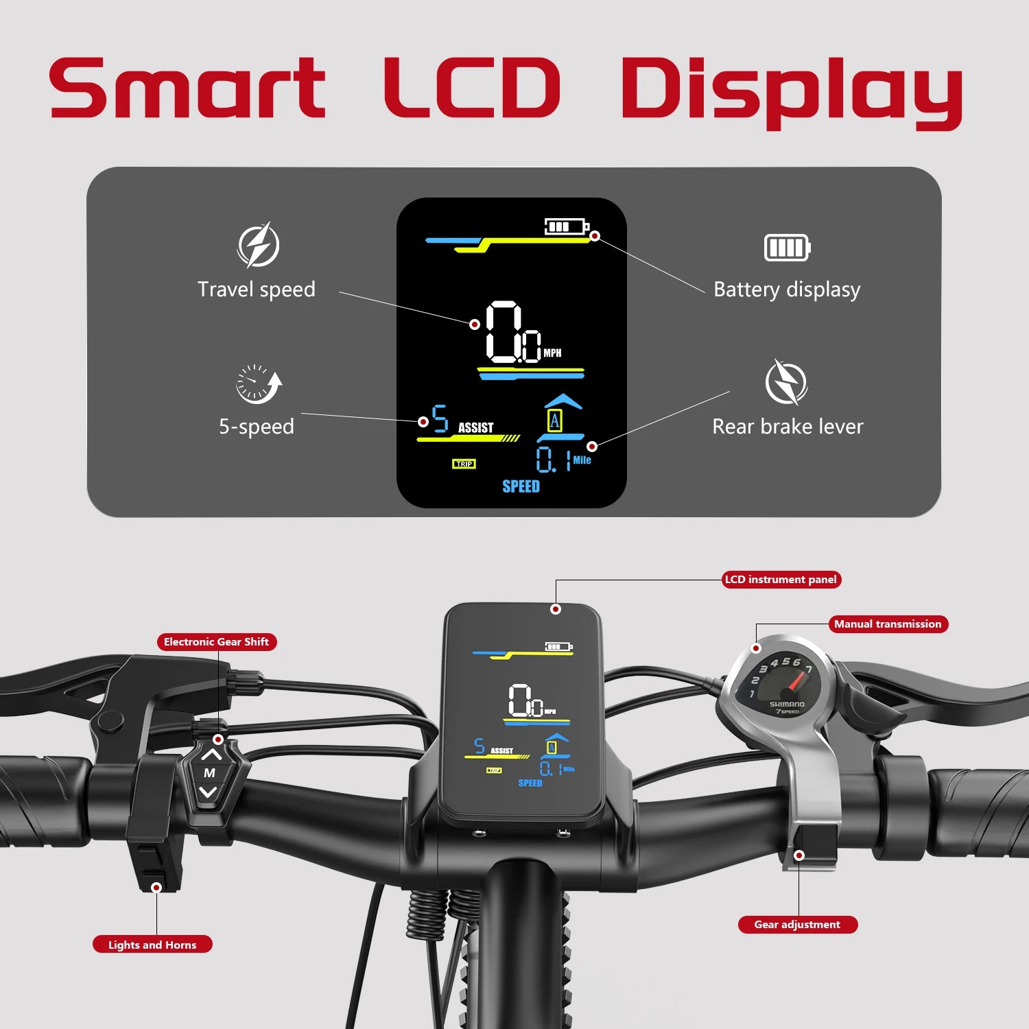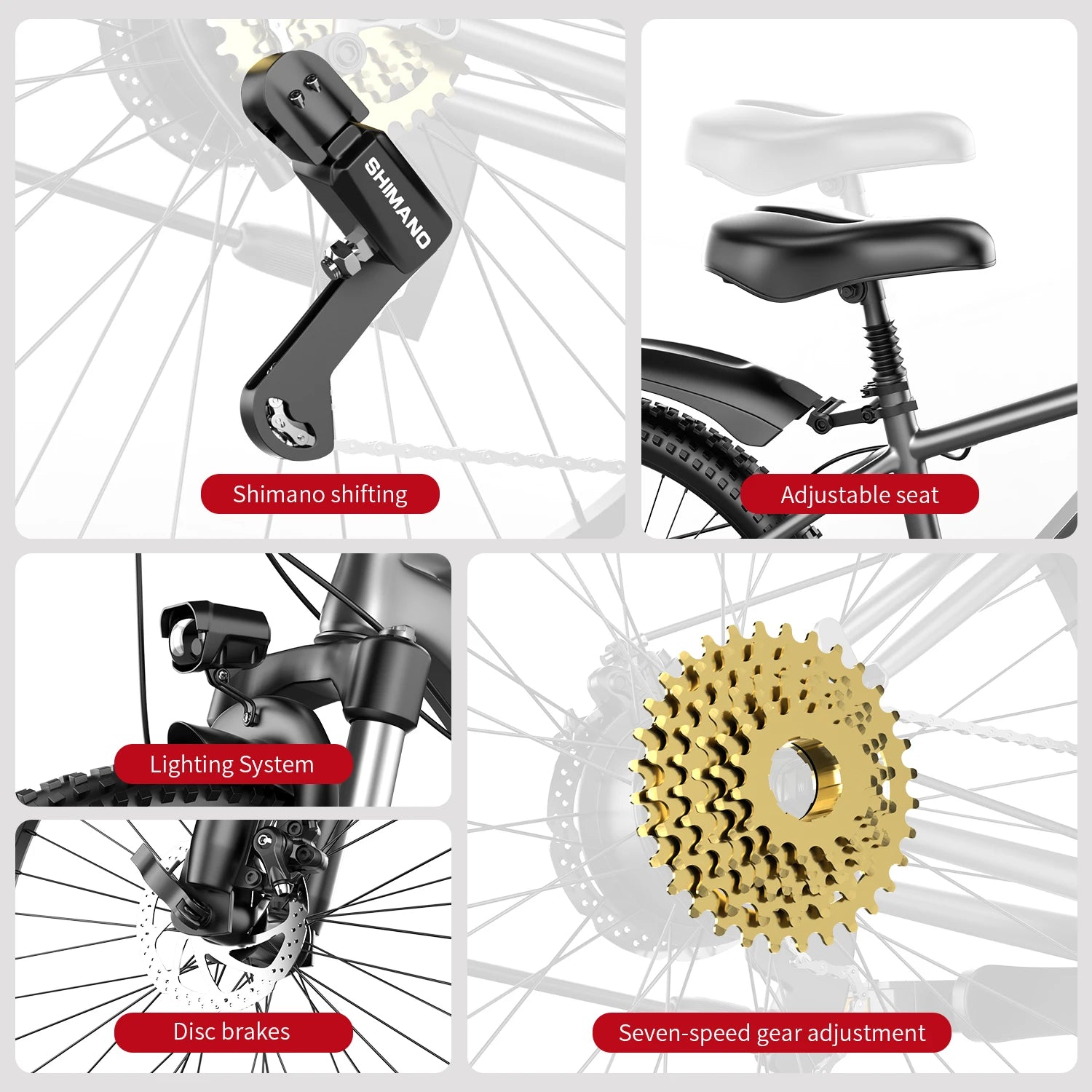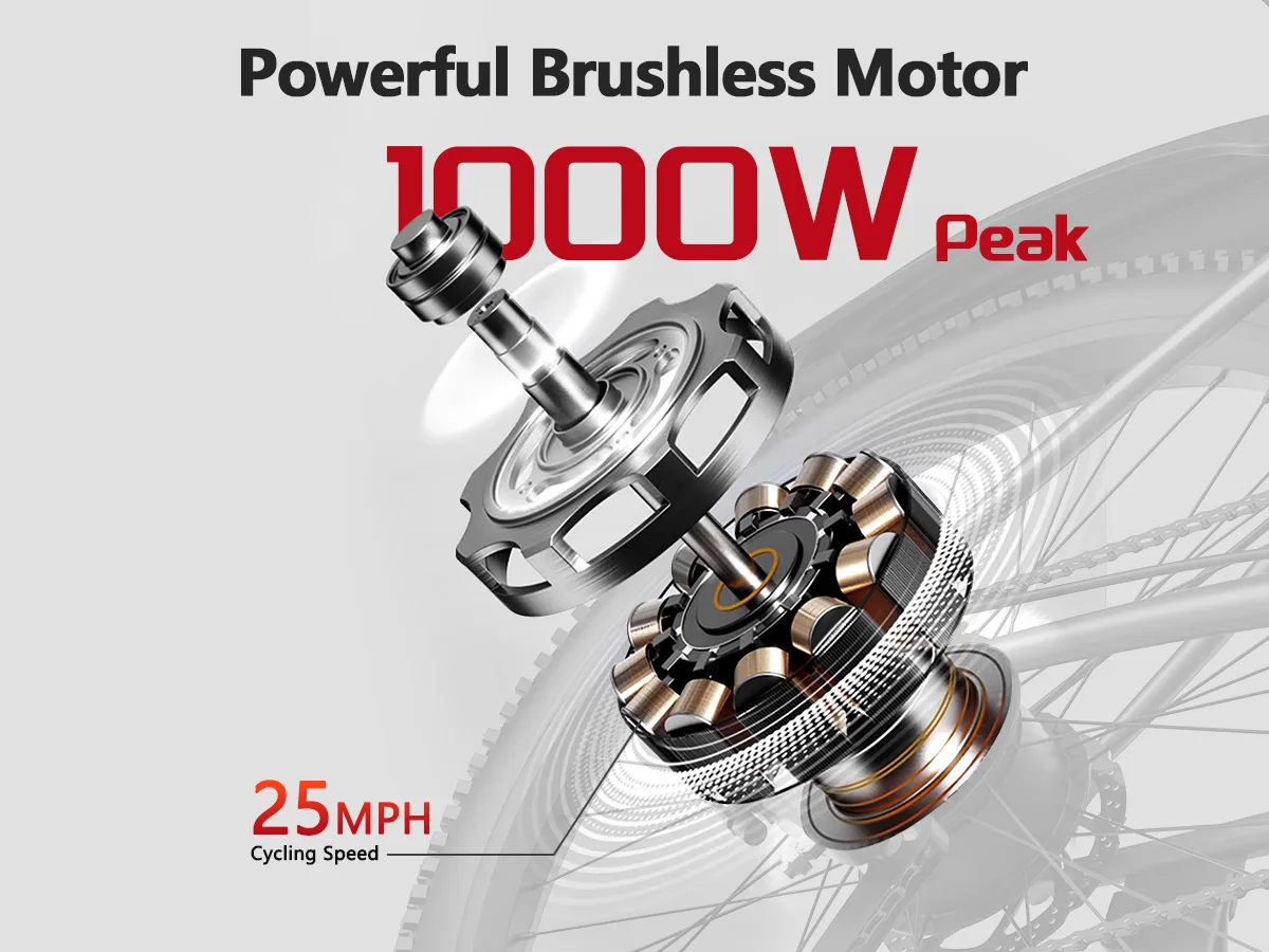 26 inch electric mountain bike, 10.4AAh/13Ah detachable battery, SHIMANO 7speed, peak 1000W brushless silent motor, 25MPH,E-bike