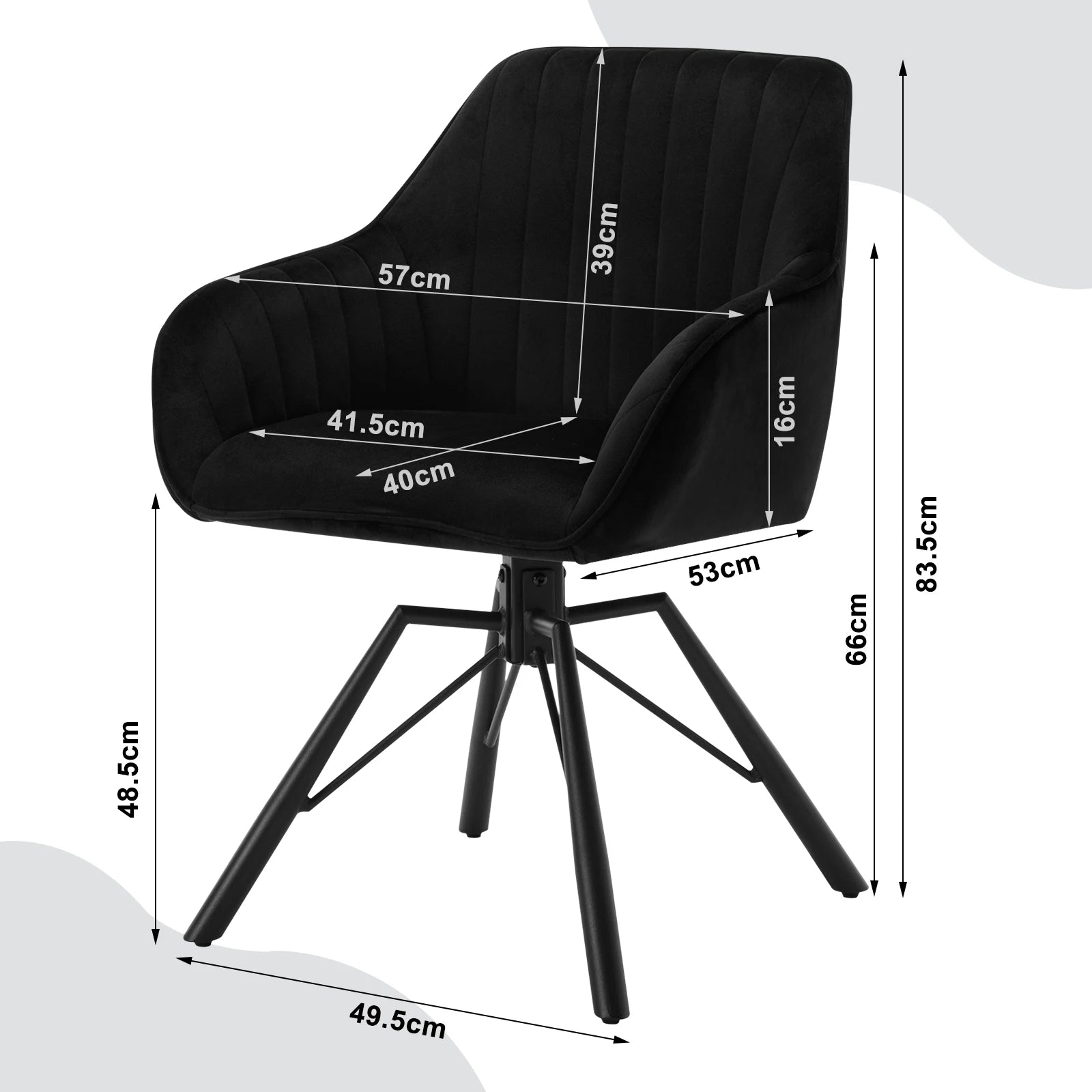 2PCS/SET Swivel Dining Chairs Velvet Living Room Ergonomic Leisure Chair Upholstered Lounge Kitchen Chair with Armrests