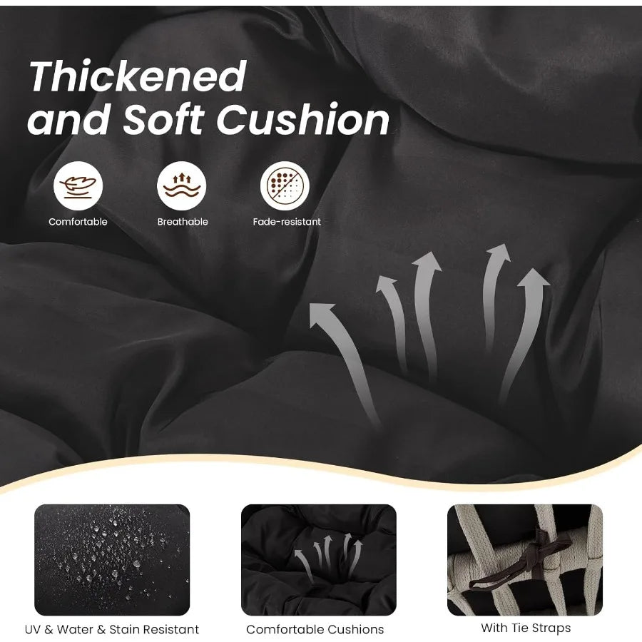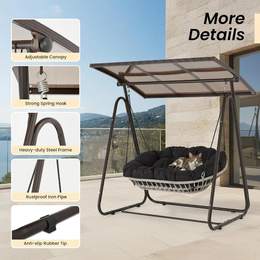 2Person Outdoor Porch Swing with Adjustable Hardtop Canopy 5.9 Thick Cushions WeatherResistant Rattan Patio Swing Chair with St