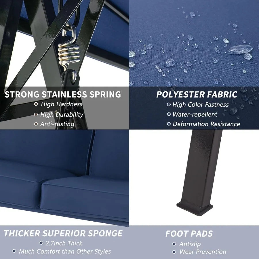 2Seat Outdoor Patio Swing Chair with Adjustable Canopy for Adults Portable Porch Swings with Removable Cushion Designed for Bac