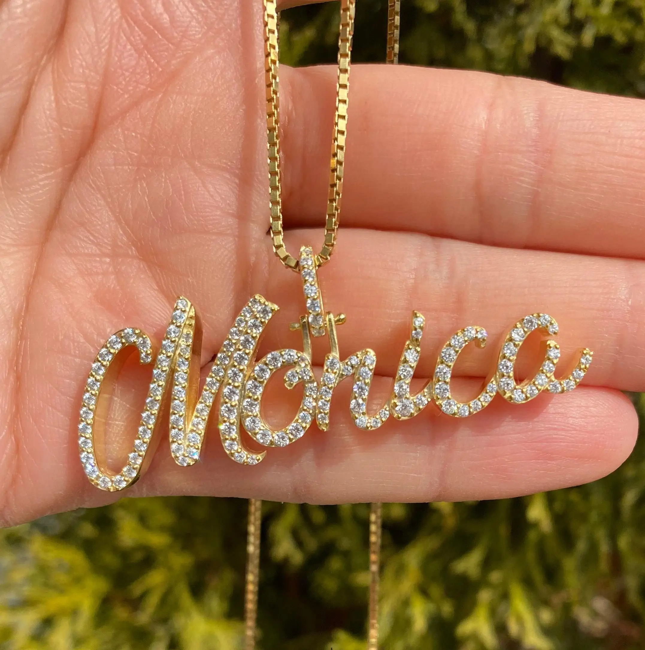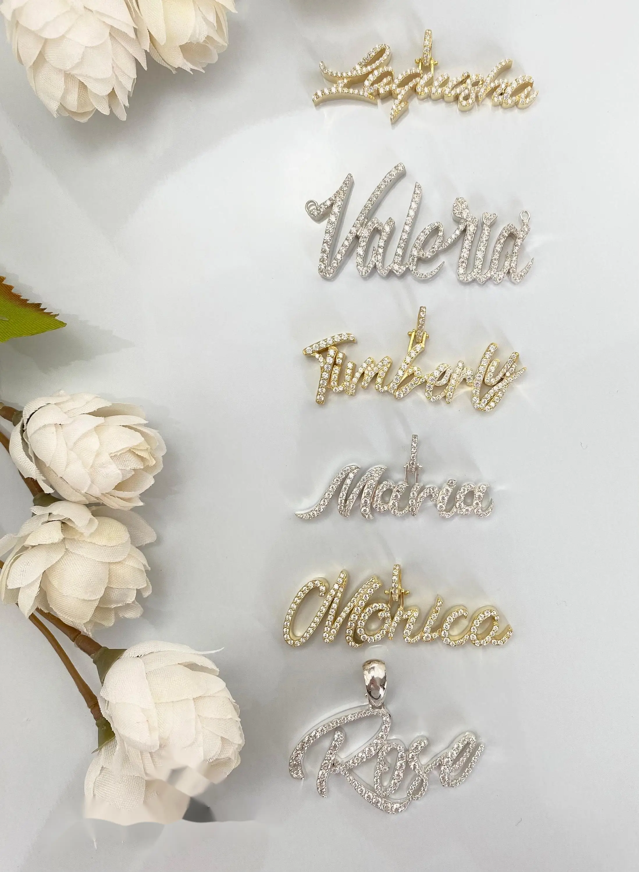 3.0mm Fabulous Custom Made 3D Name Pendant 925 Sterling Silver Luxury Jewelry Pave Zirconia Name Pendant Christmas Gift for Her