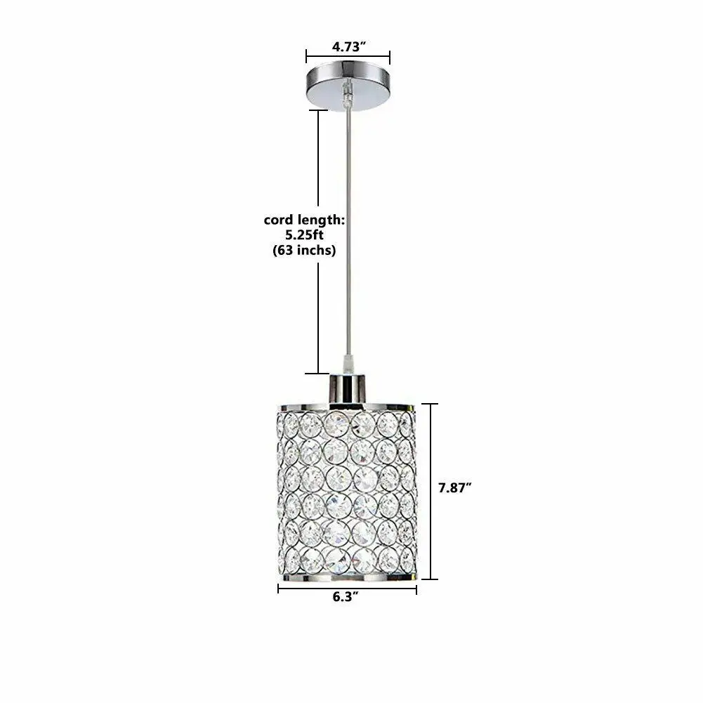 Overall Height : 6.29’’ D x 70.86’’ H; Crystal Shade: 6.29'' D x 7.87'' H; Adjustable Cord: Max 62.99’’. The electric cord is adjustable, you can get the length you want. Pls note the size before purchasing.