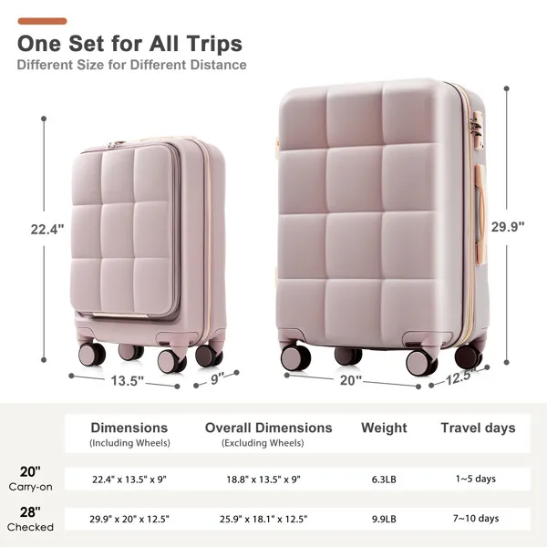 Durable ABS Material-Crafted from high-quality ABS, this set includes 20" and 28"suitcases that are lightweight yet tough enough to handle the rigors of travel.