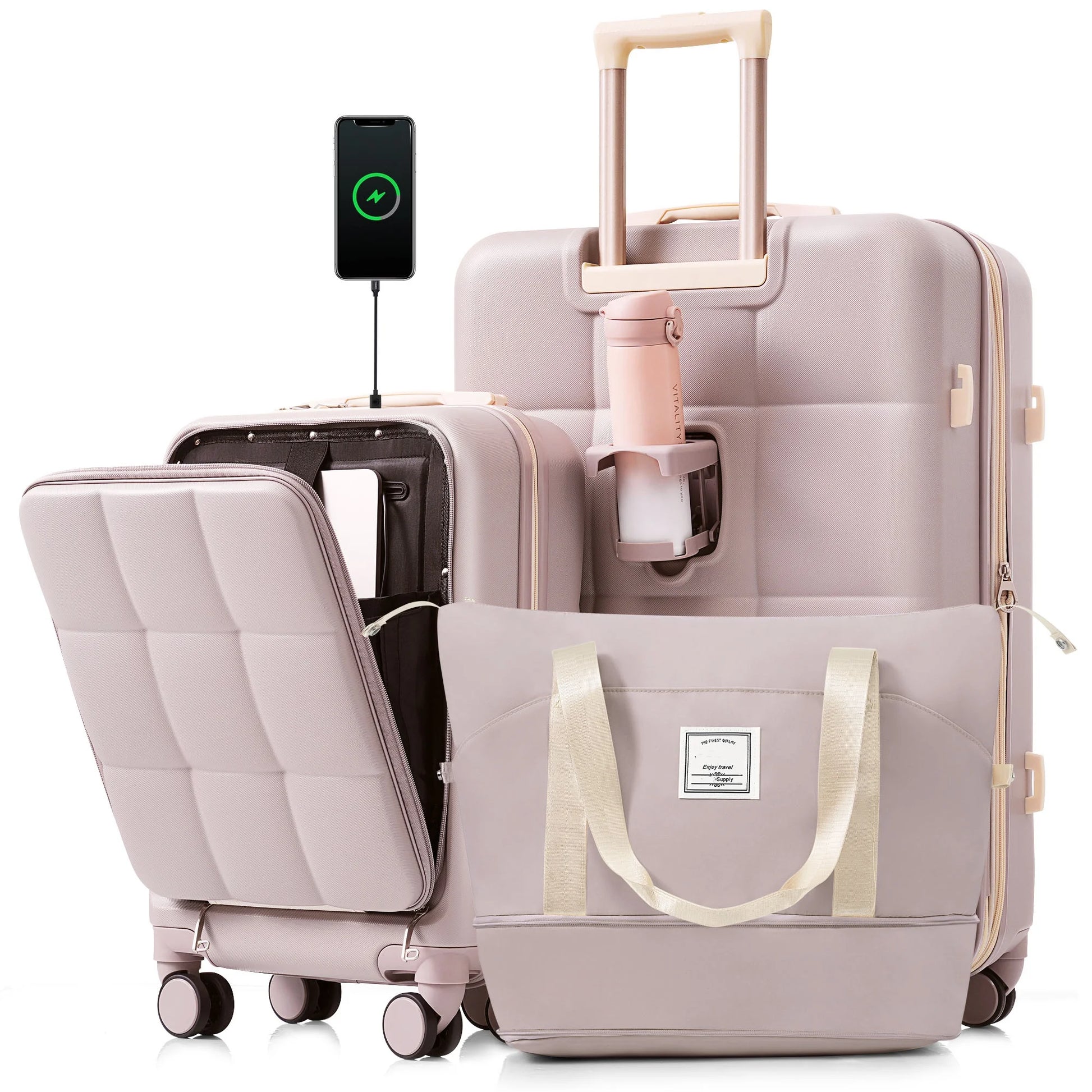 Innovative Front-Opening Design with USB Port – The 20" carry-on luggage features a convenient front-opening compartment for quick access to essentials and a built-in USB port for charging your devices on the go.