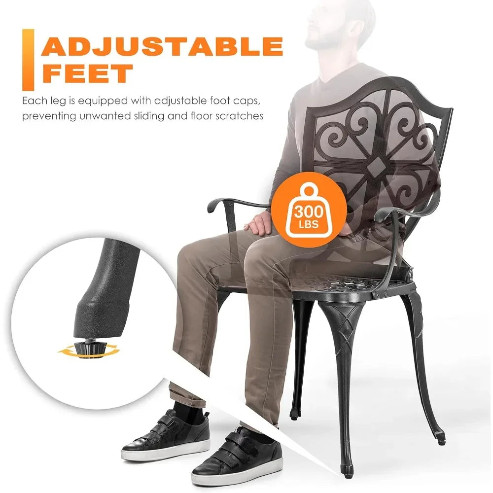 - Powder-Coated Frame: The outdoor bistro set frame made of high-quality cast aluminum with powder-coating protects the patio bistro set from getting rusty from all weather and ensures its durability for years to come