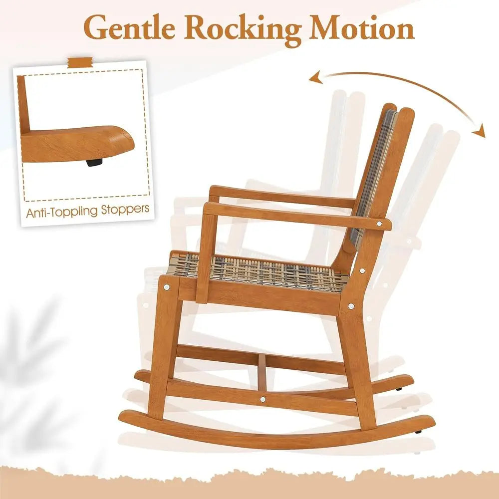 3-Piece Outdoor Patio Rocking Set with PE Rattan Chairs and Acacia Wood Coffee Table for Balcony, Garden, and Poolside