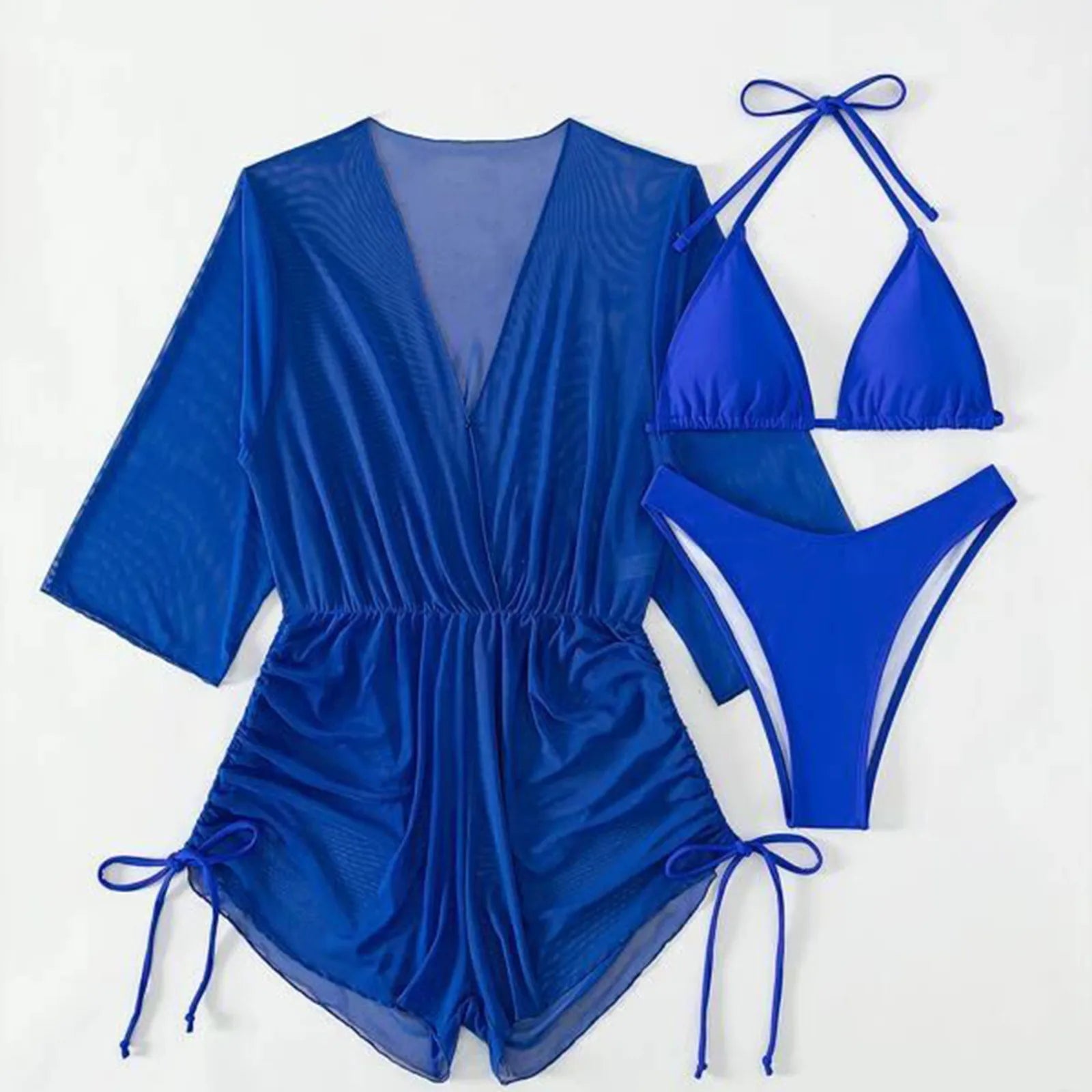 3 pieces Bikinis sets Sexy Triangle Cup Hanging Neck Swimwear Back Strap Graze High Cut Briefs Drawstring Swimsuits Bikinis