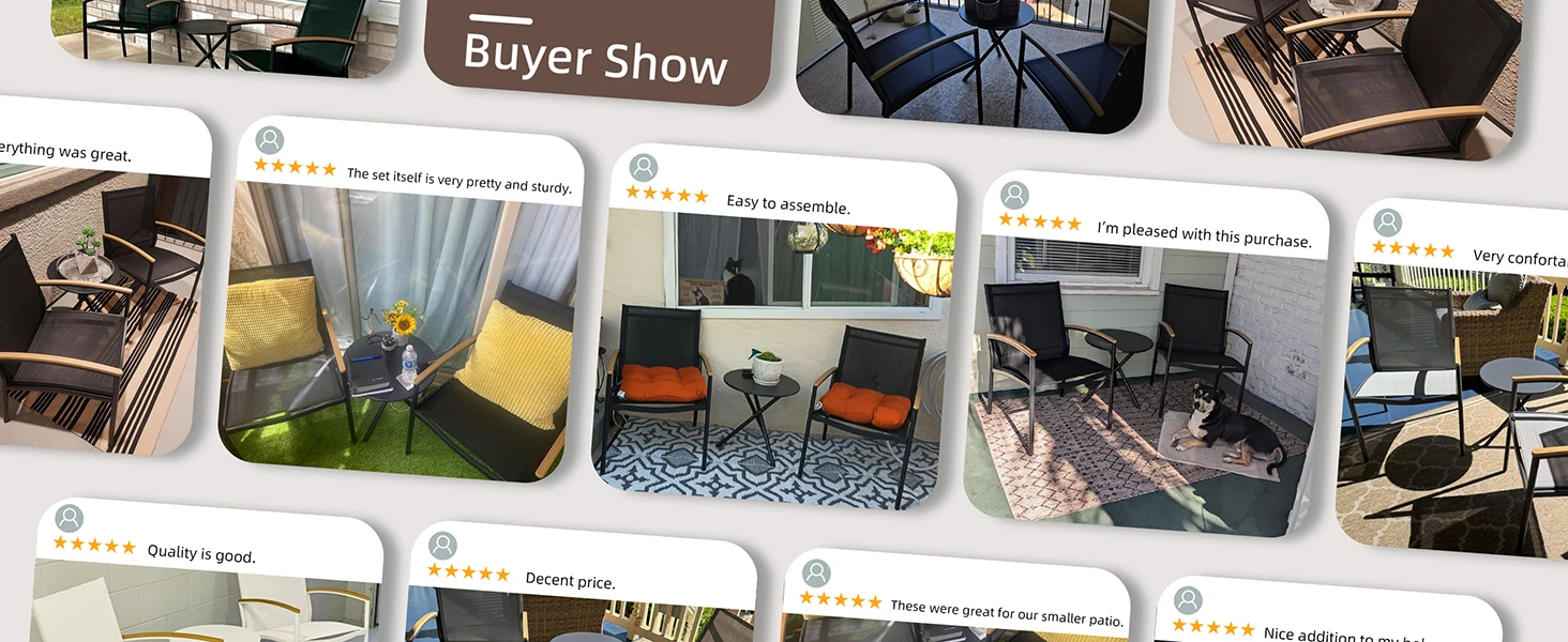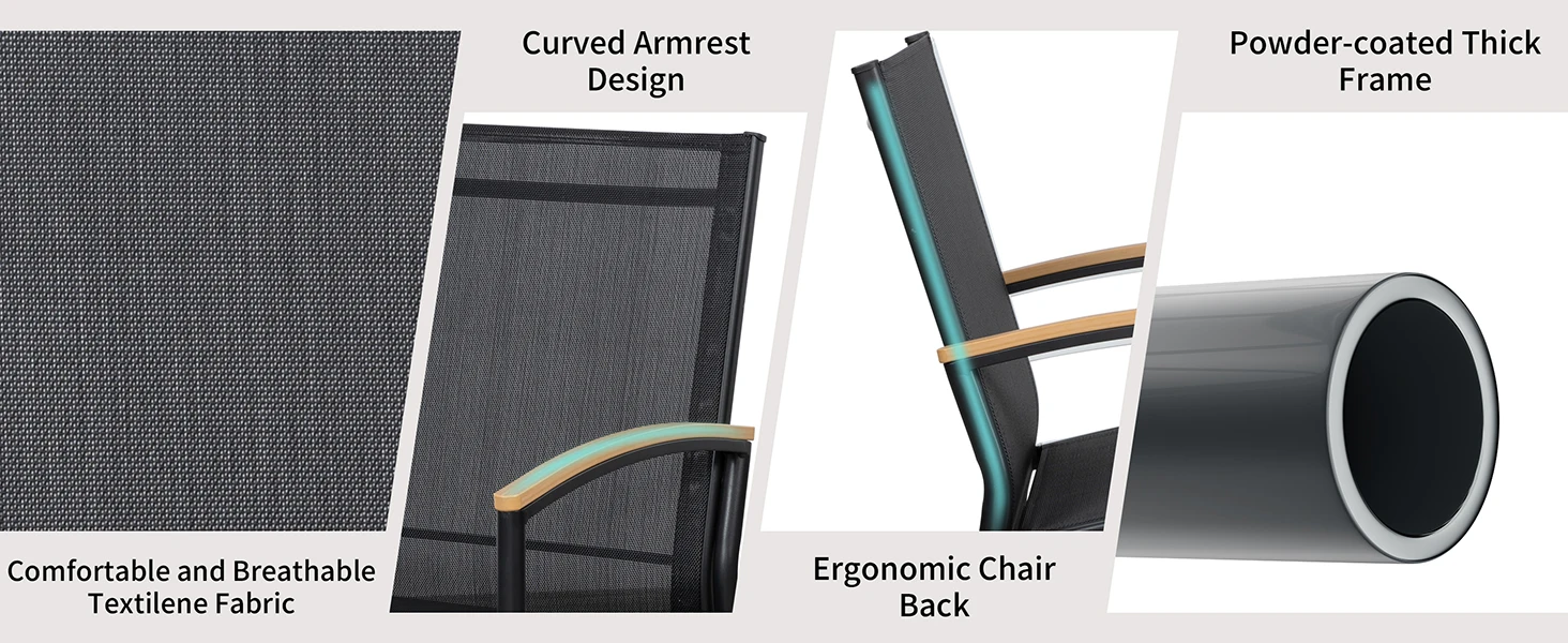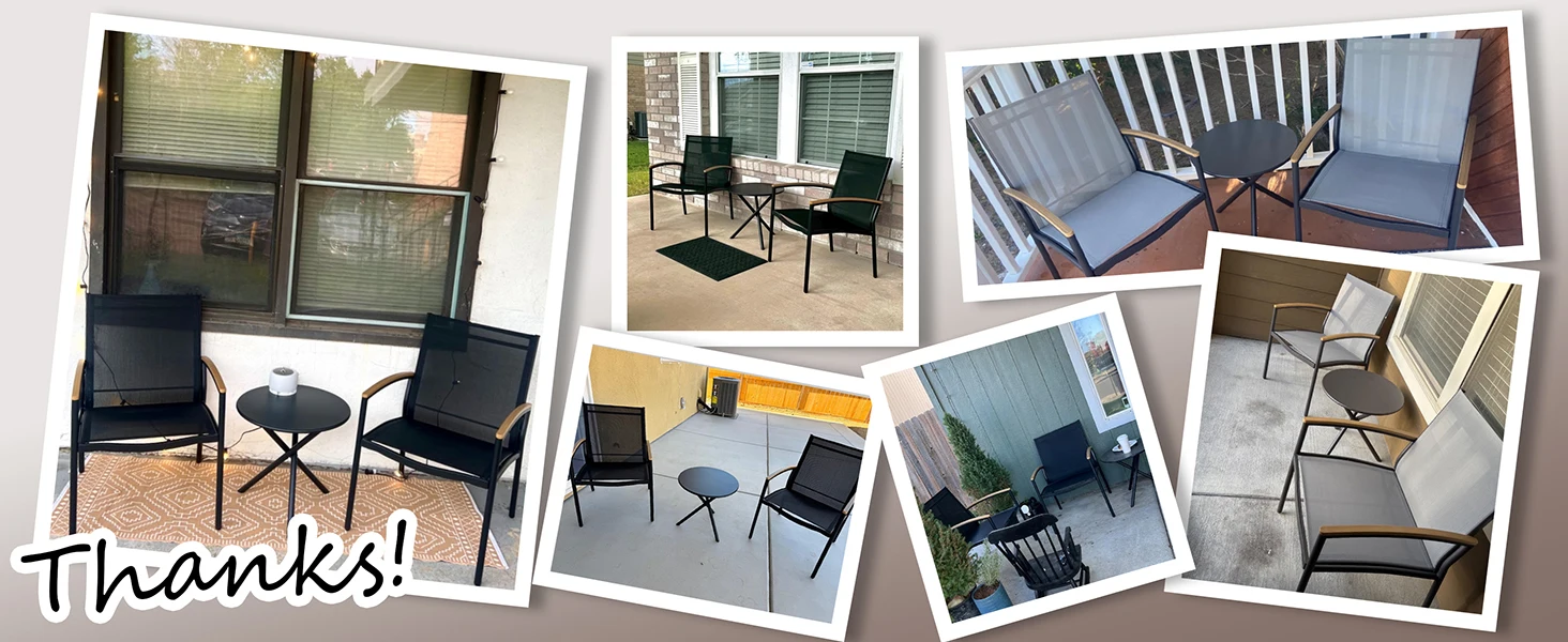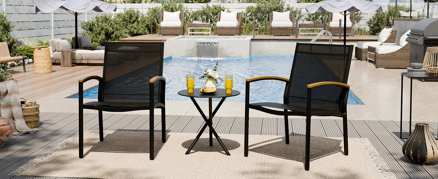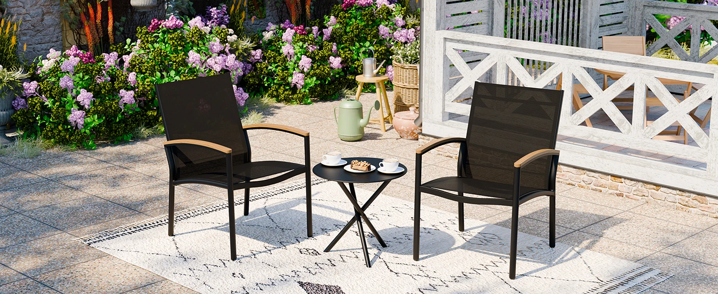 Imagine sitting in the yard on a fine afternoon, chatting with friends at leisure. Coffee on the table, you and your friends sit on the rocker, enjoying the breeze and sunshine. So relaxing! All you need is this rocking bistro set. Making by selected steel, the rockers are sturdy enough. Also the better balanced design is equipped to improve your sitting experience. The breathable textilene fabric seat won't let you feel any of uncomfortable. Featuring a small table, you can put your handphone or cups of tea on it. Tempered glass on the table adds more convenience to clean if any drinks drops on it. Also, the 3 piece bistro set comes with a simple chic looking, which making it suitable for any decor style for your patio, yard, poolside, balcony and front porch. Just bring it your home and start relaxing your outdoor leisure time!