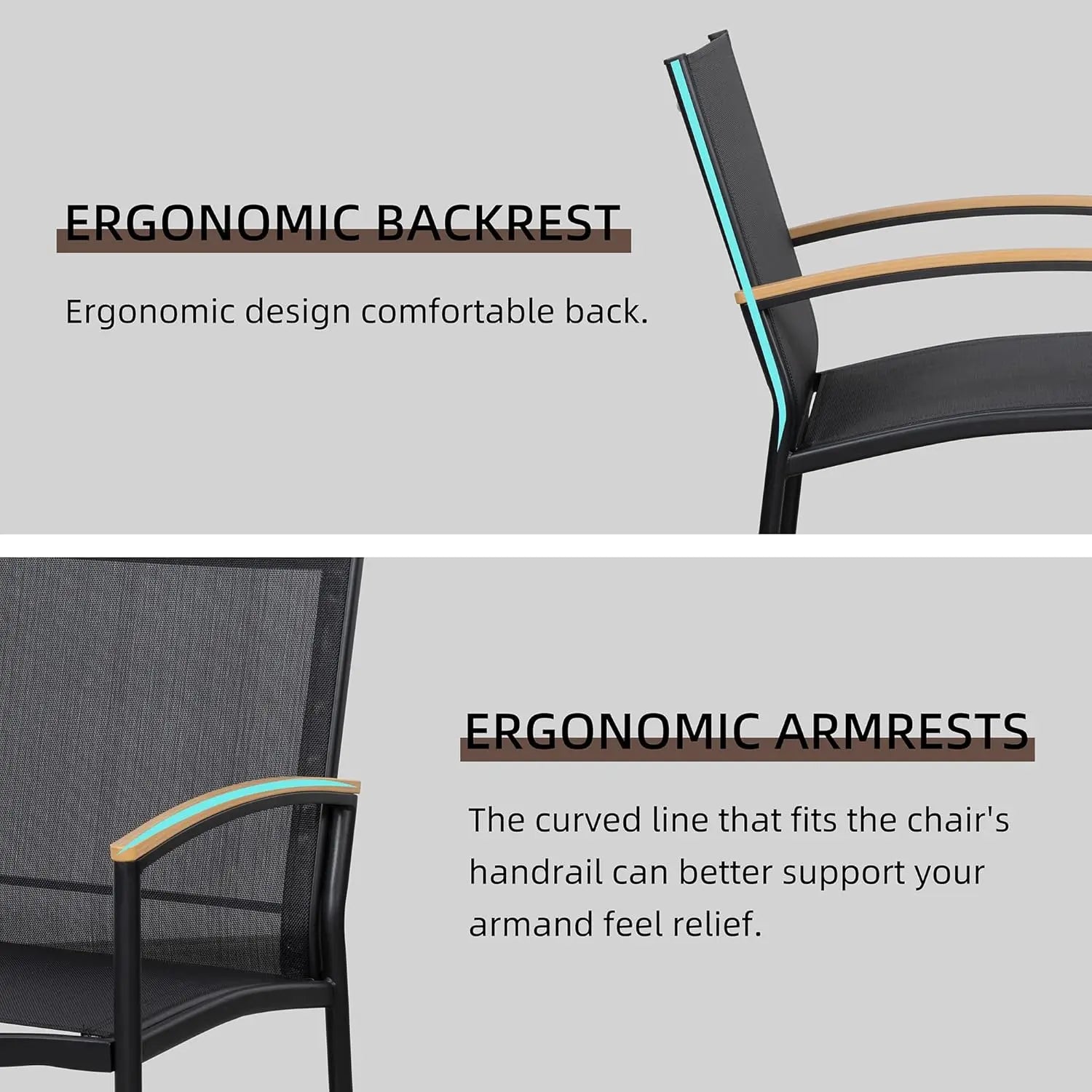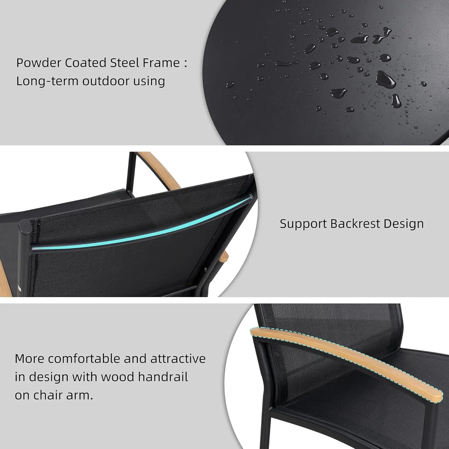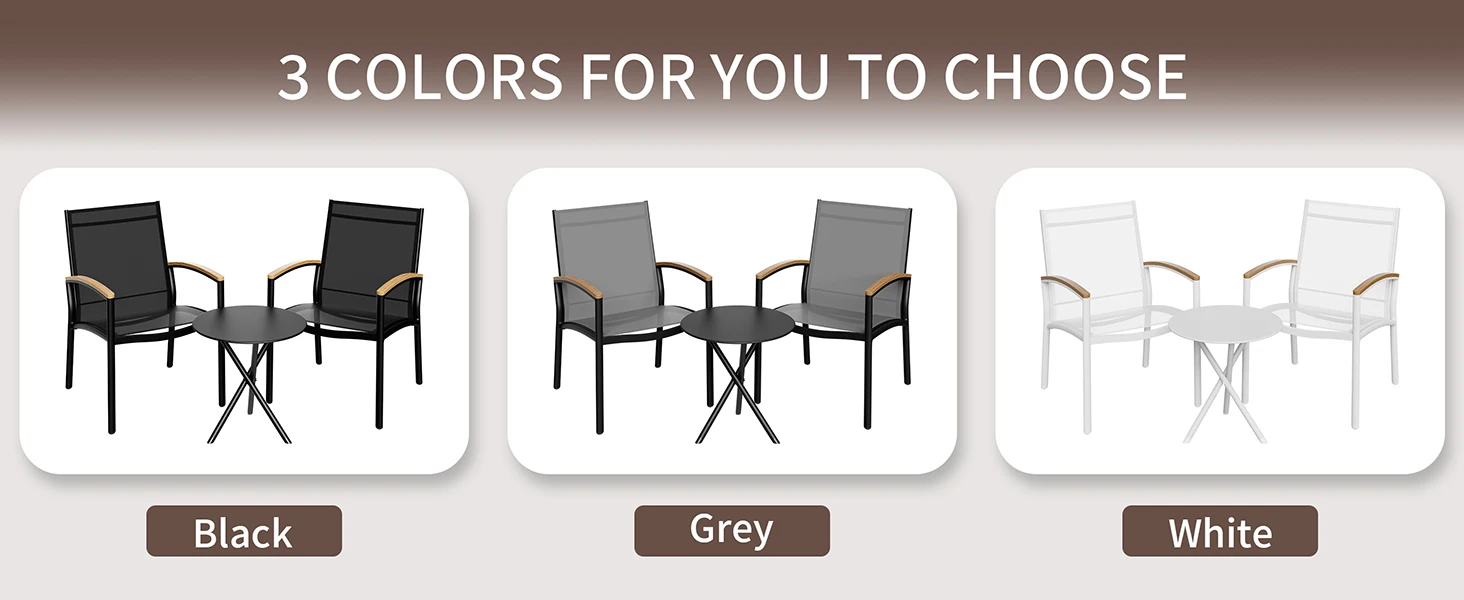 3 Pieces Patio Bistro Sets Outdoor Textilene Fabric Conversation Set with Table