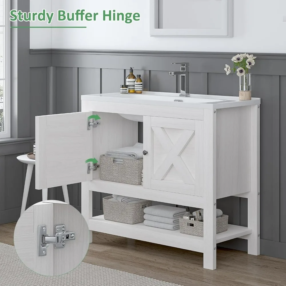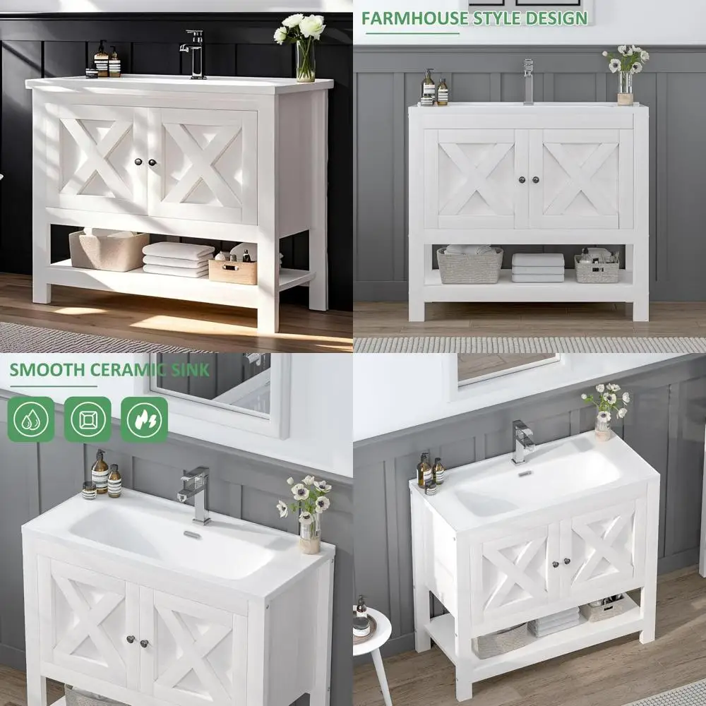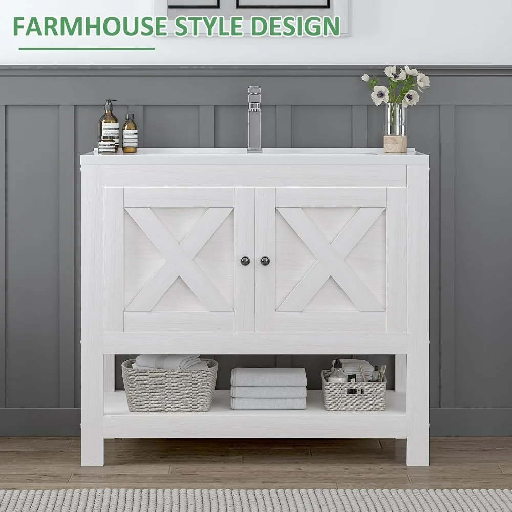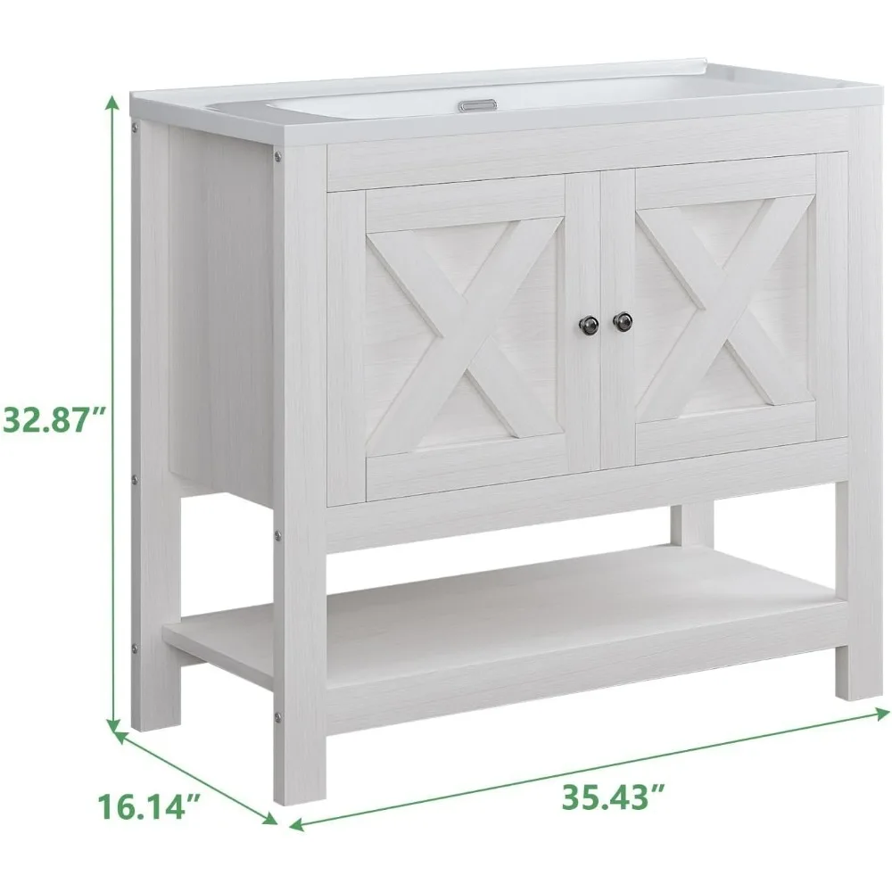 "35" modern farmhouse vanity with sink, freestanding cabinet, 2 doors & open shelf for bathroom