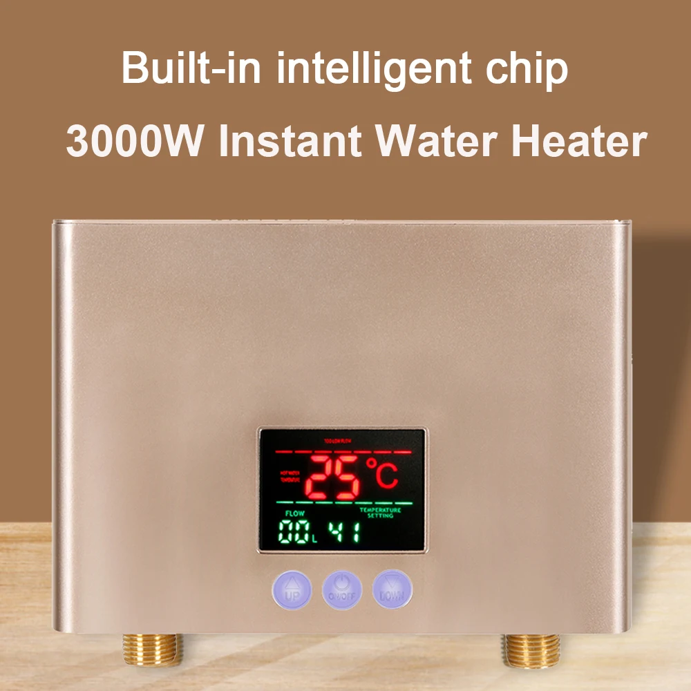 3KW Instant Water Heater Electric Tankless Heater LCD Display Wall-Mounted Remote Control Water Calorifier for Kitchen Bathroom