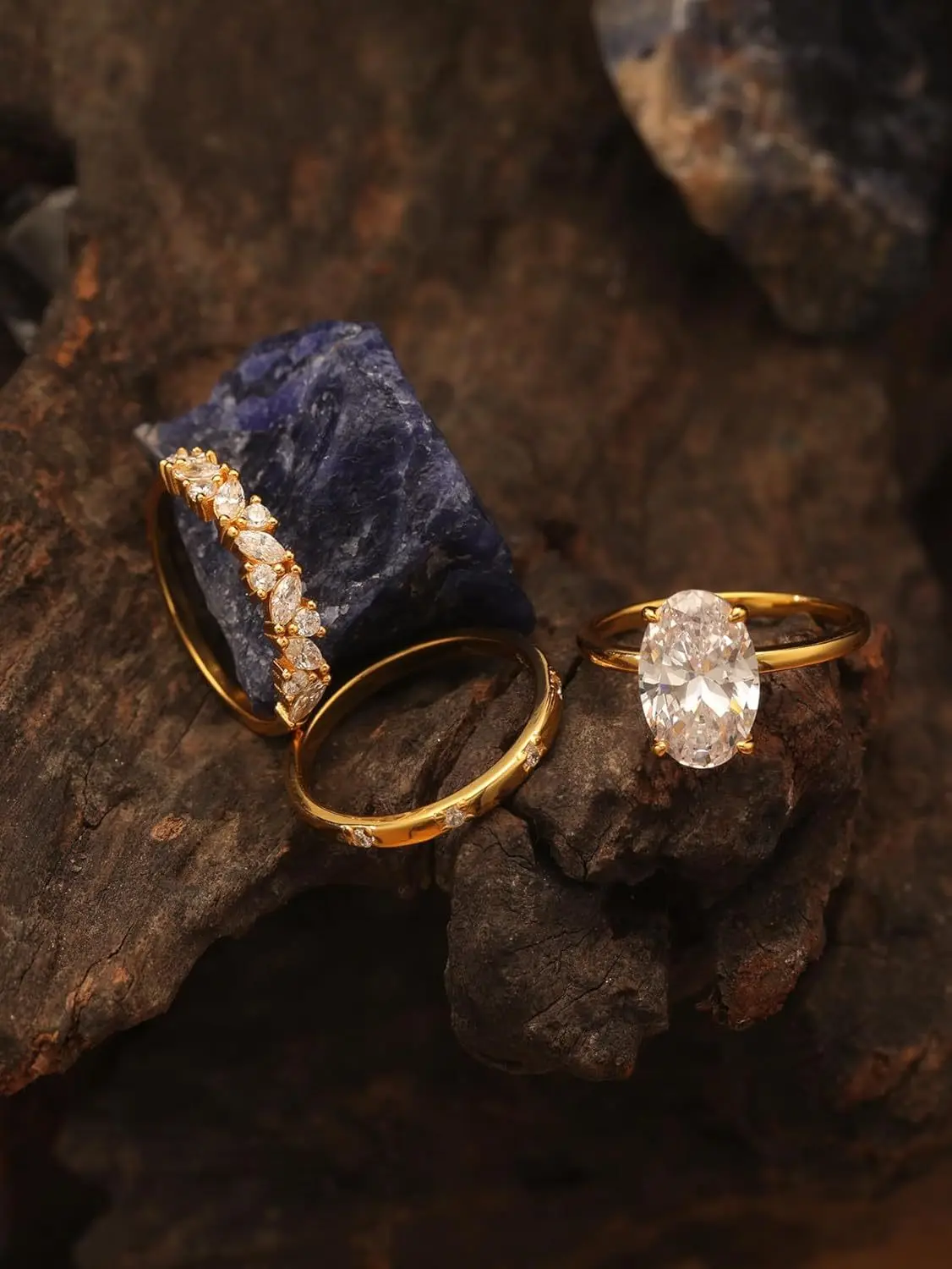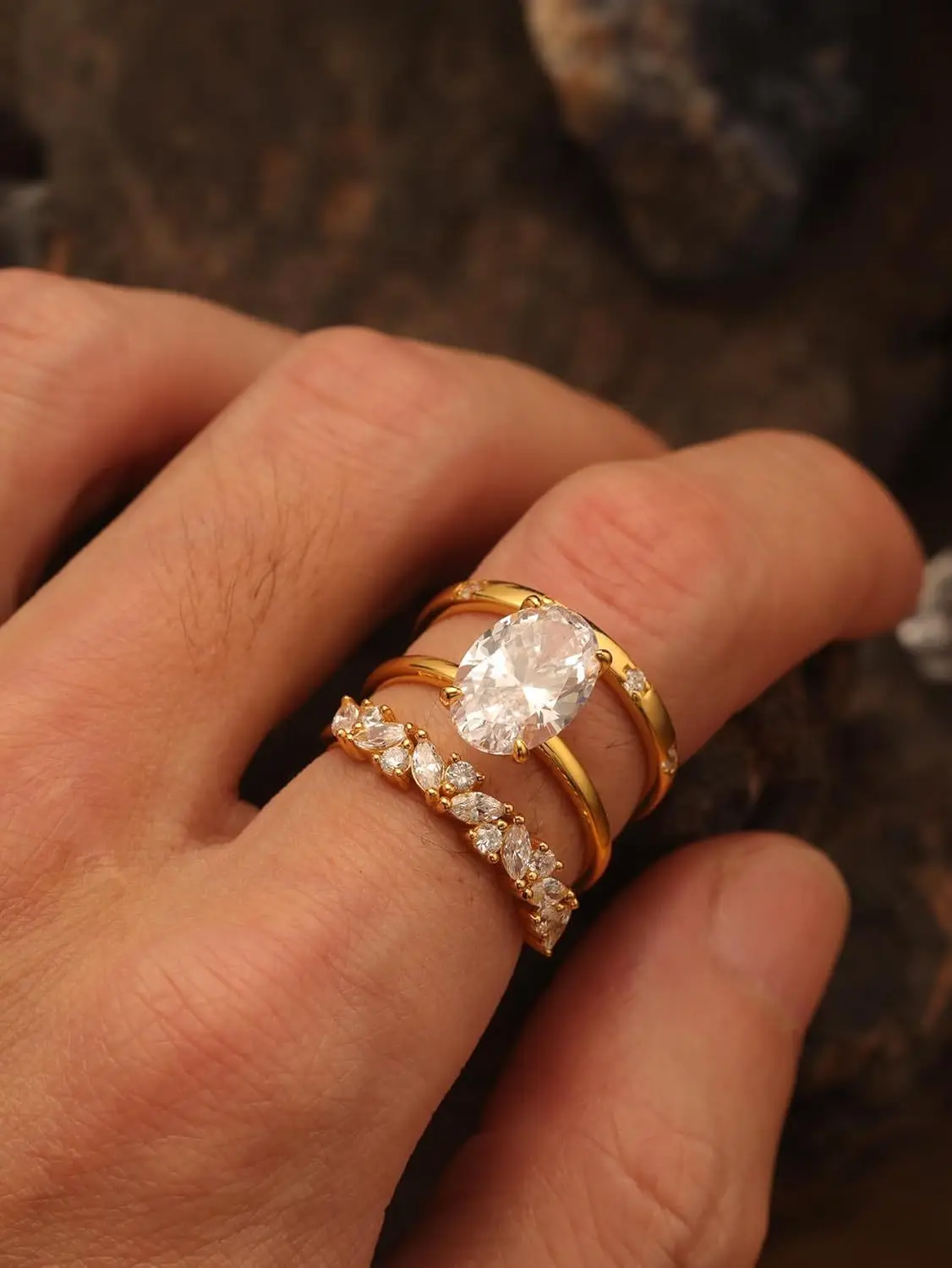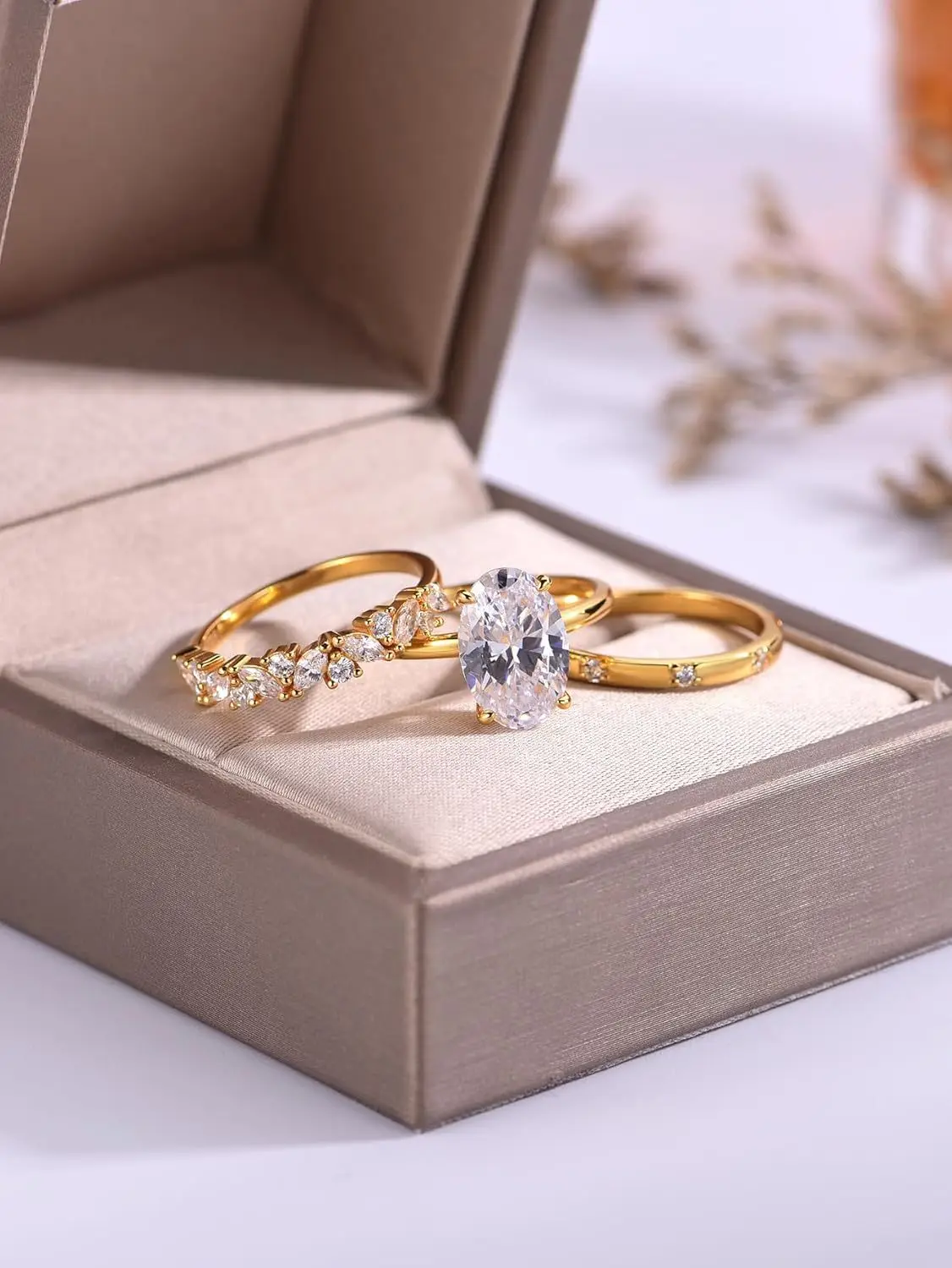 3pcs Oval Moissanite Bridal Set 8x12mm 4.5CT - Stackable Wedding Rings Fine Jewelry for Women, 925 Sterling Silvery Luxury Trio
