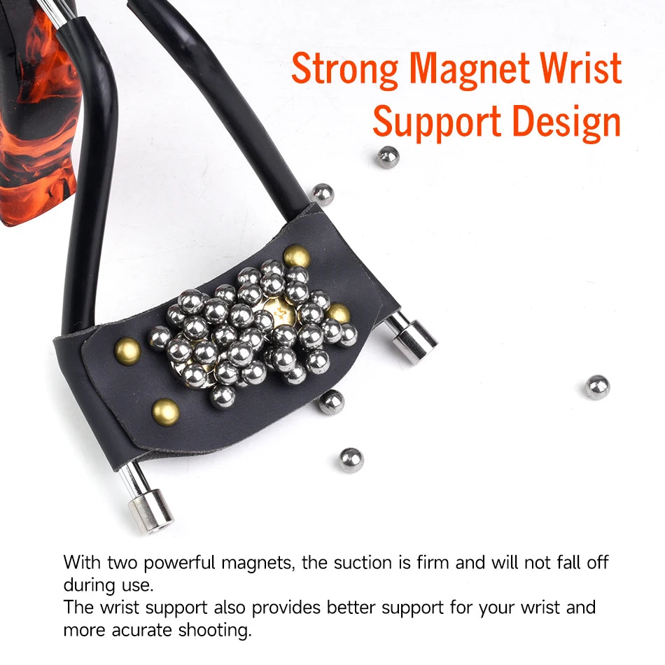 4. The wrist support will help you maintain balance when aiming at the target. The magnetic ring on the wrist bracket can accommodate steel balls and mud balls (with magnetic powder added), so that bullets can be contacted quickly and easily during shooting.