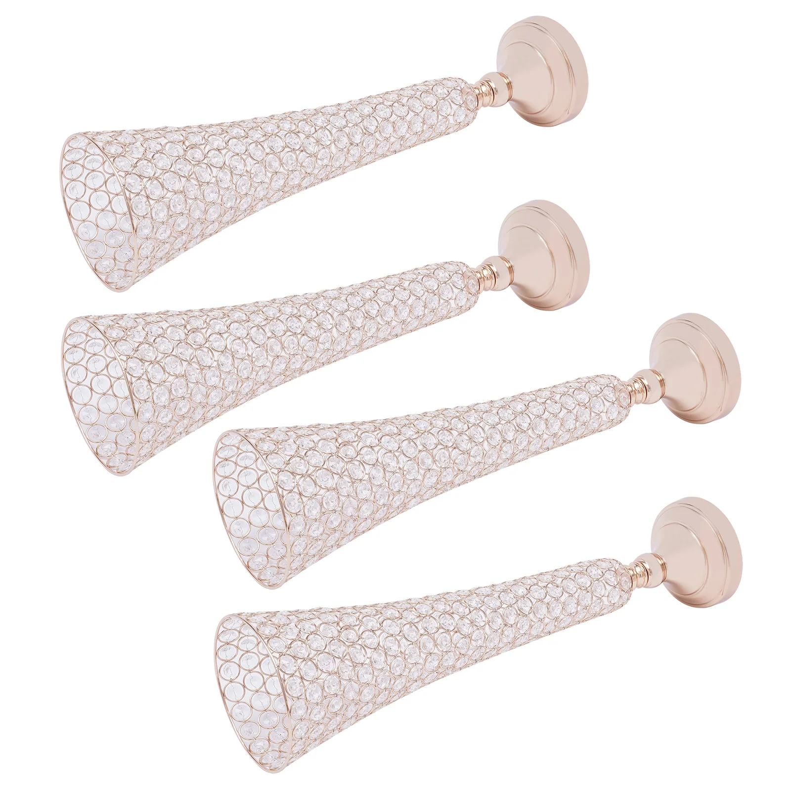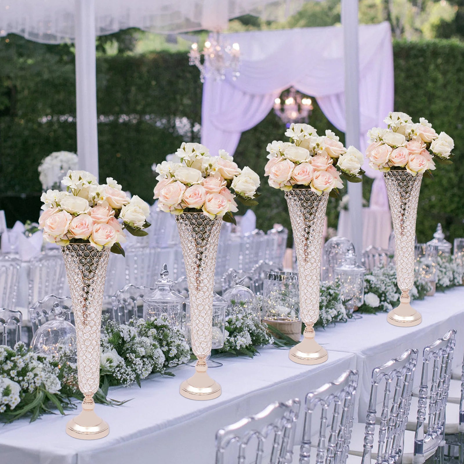 4 Pcs Elegant Gold Crystal Trumpet Floral Vase Set, Luxury Wide Mouth Vases with Sturdy Base for Home Bedroom Balcony Decor