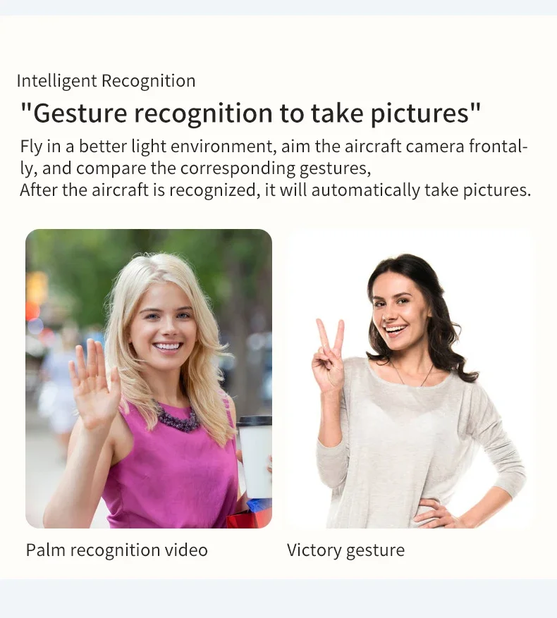 8. Gesture shooting recognition: within 1-3m from the aircraft, face the camera to make a photo gesture/camera gesture.