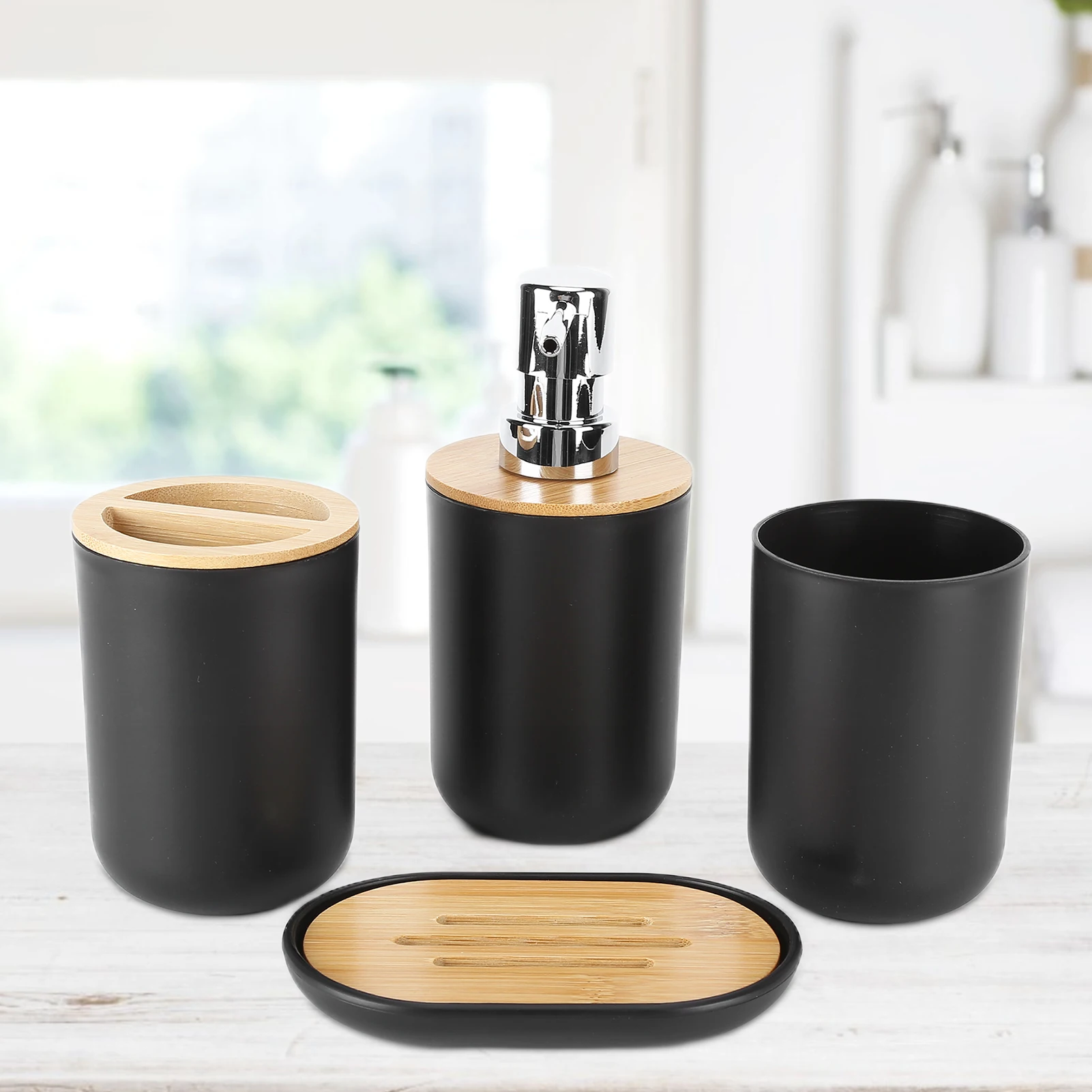4Pcs Bathroom Accessory Set Bamboo Waterproof Gift Toothbrush Cup Soap Box for Home Hotel